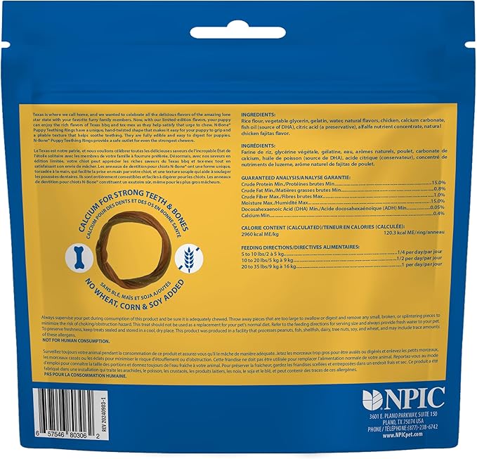 N-Bone Puppy Teething Rings Taste of Texas Chicken Fajitas Flavor 3 Count