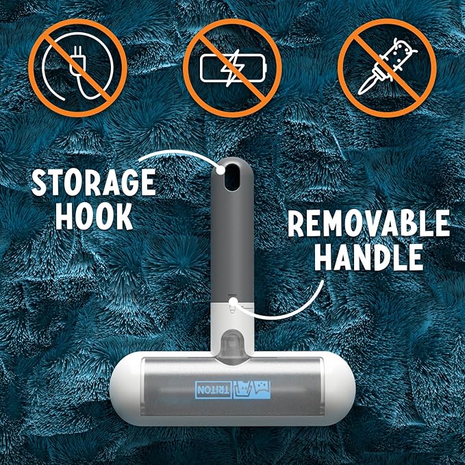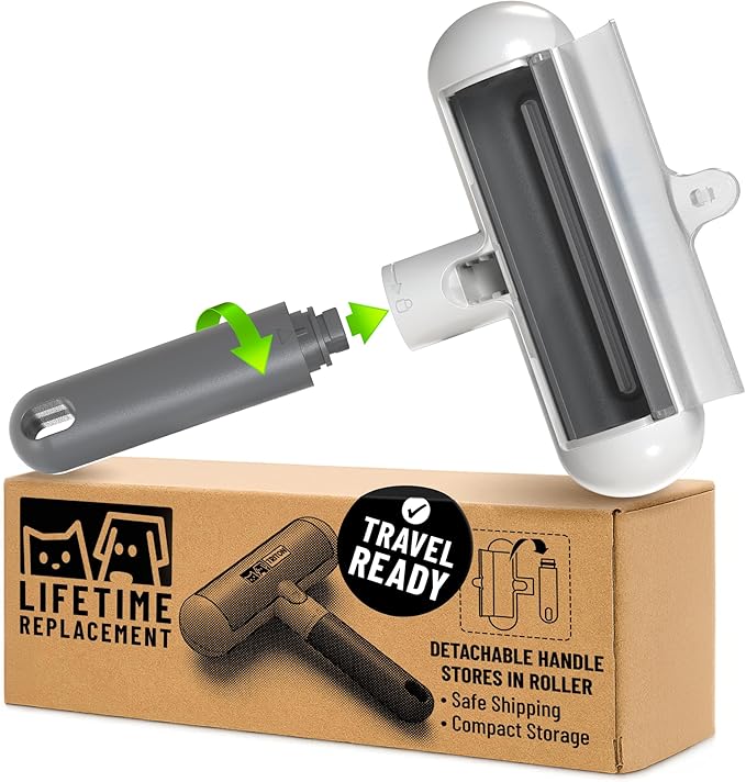 - DETACHABLE HANDLE FOR EASY PACKING (COMES STORED INSIDE ROLLER FOR SHIPPING): The removable handle design makes this pet hair remover highly portable and simple to store in tight spaces. Lightweight and easy to grip, it’s built for travel, daily use, and small-space living. Whether cleaning pet fur from clothes, couches, or car upholstery, the detachable handle ensures convenience and comfort with every use.