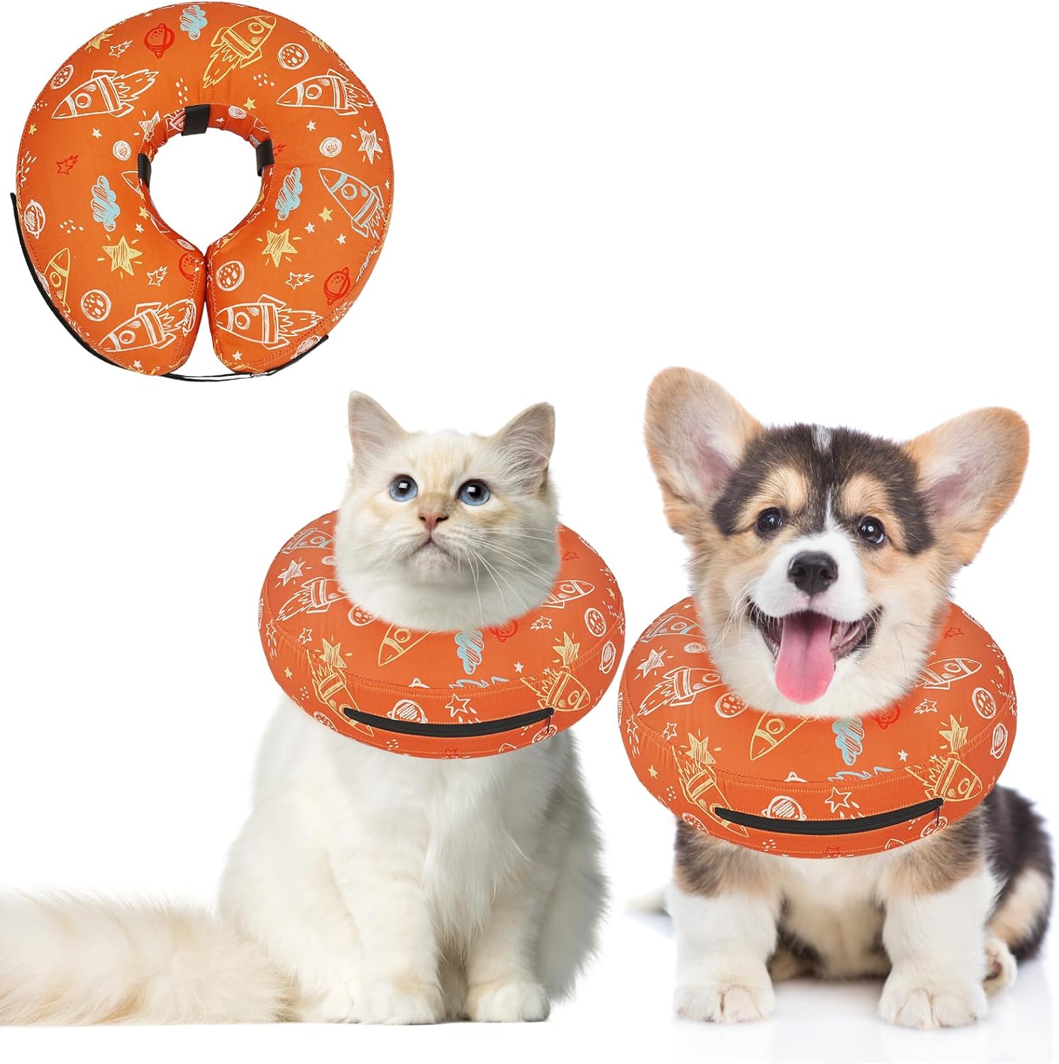 - Scratch & Bite Resistant - Our inflatable dog collar is a great choice after surgery. It replaces the usual dog cones. The collar is like a soft donut around your dog’s neck, stopping them from biting or licking their wounds. The cute donut shape makes it a stylish accessory instead of a boring dog surgery collar. Your pet will be much happier wearing it.