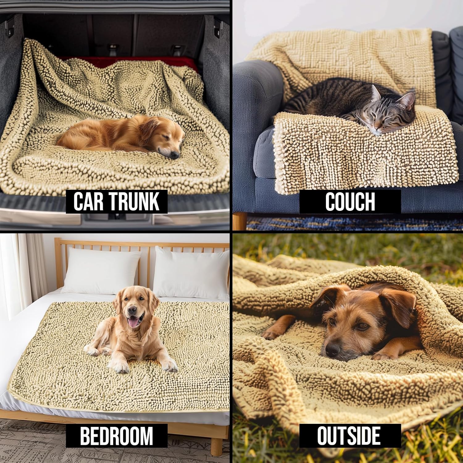 Muddy Mat® Dog Blanket - Chenille Water Absorption Blanket for Bed & Couch Cover for Dogs Washable, Anti-Slip Soft and Durable Furniture Protector for Dogs - Beige 40"x50"