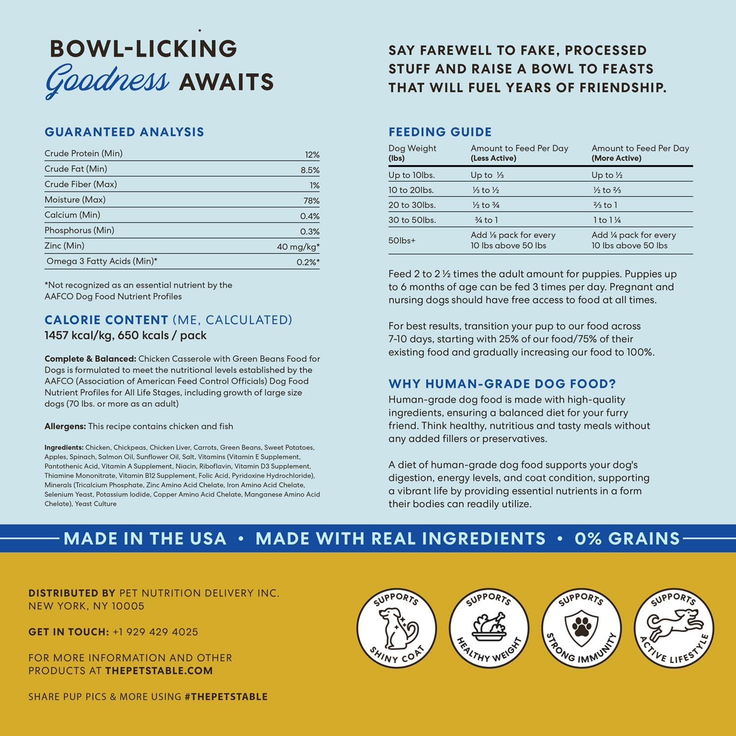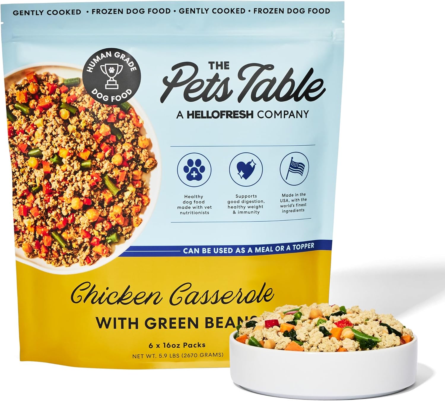 The Pets Table Human-Grade Chicken Casserole Fresh Dog Food, Dog Food Topper or Complete Meal, 6 Count of 16-oz Pouches, 5.9lbs