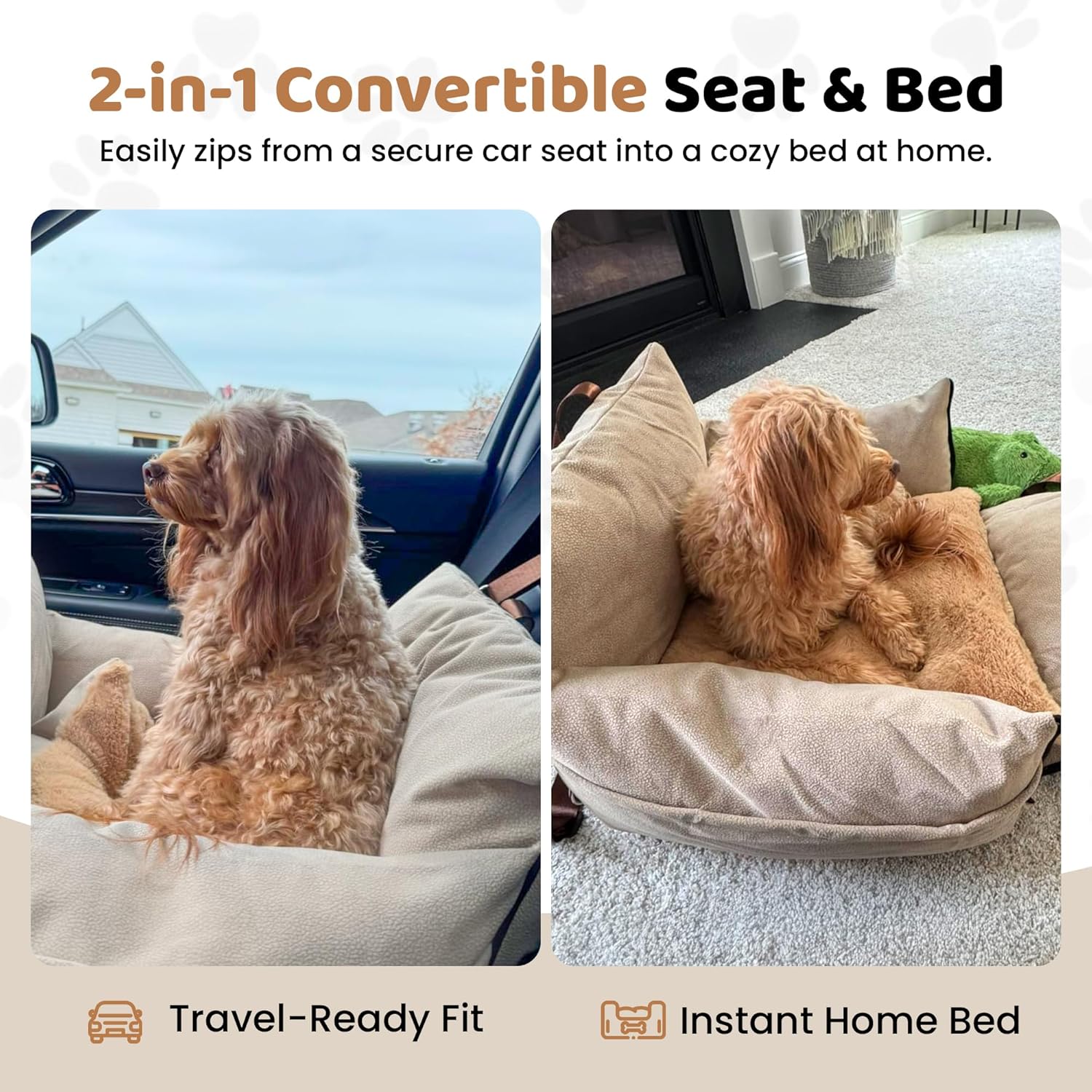 Cozy Dog Car Seat for Medium Dogs, Soft Dog Bed for Car, Safety Travel Bed & Portable Pet Carrier, Removable & Washable with Storage Pockets, Clip-On Safety Belt