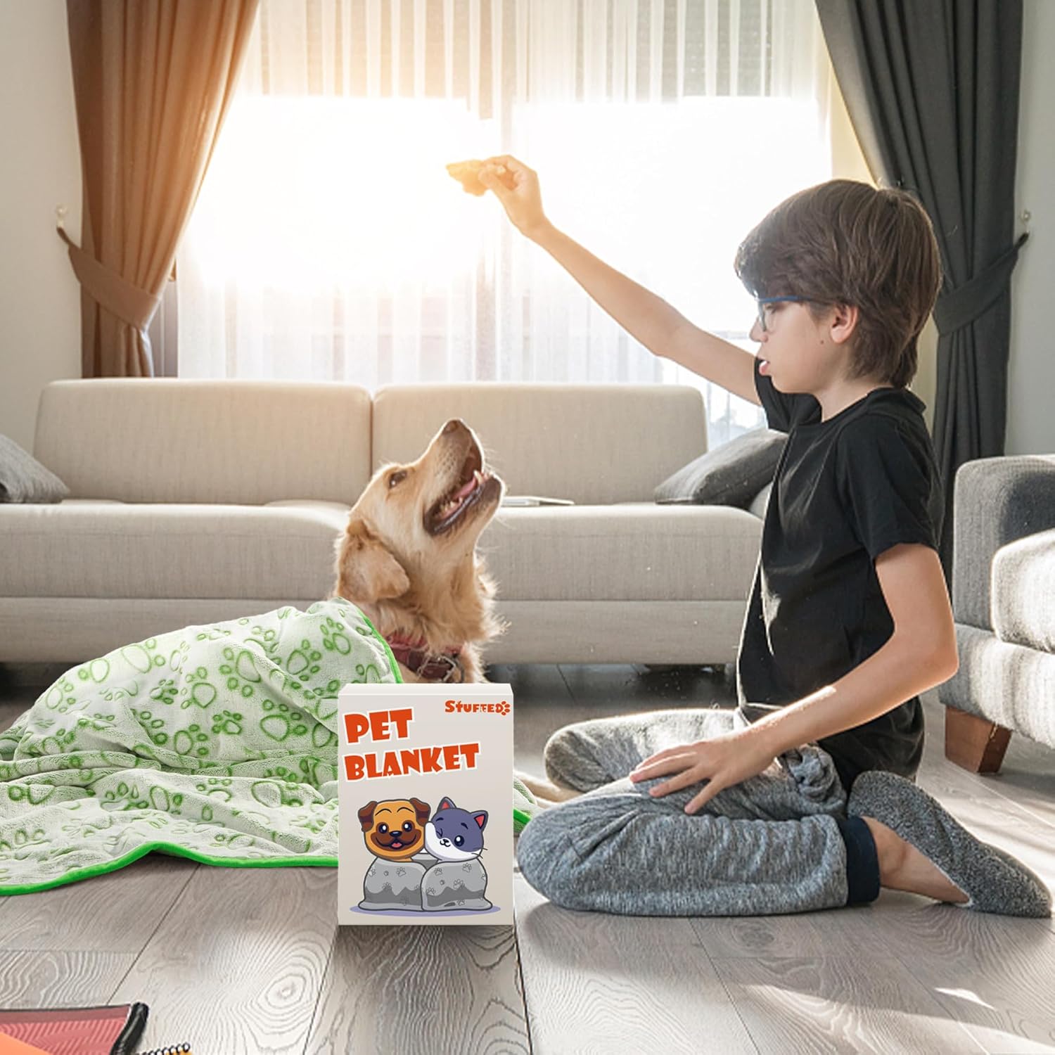 - PREMIUM MATERIAL FOR PETS ONLY: Super Soft & Warm comfy fleece for your pets, exclusive cute paw prints design on the top, lovely solid green color on the back, no fear of peeing, bitting, chewing and tearing. Your dog will love this dog products! A good match for puppy toys.