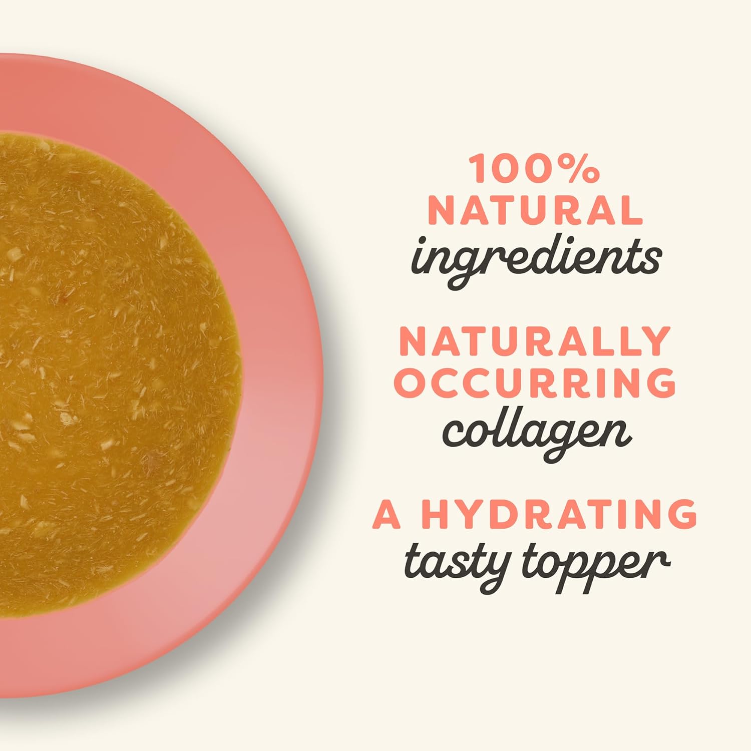 - Natural Source of Collagen: Packed with high-quality, real protein and enriched with natural bone broth, these cat food toppers are crafted to satisfy your cat’s instinctive cravings for rich, flavorful nourishment. The combination of premium protein and natural bone broth creates a delicious treat that’s not only irresistibly tasty but also a powerful source of natural collagen - a vital nutruent that aids in maintaining your cat’s joint, skin, and coat health.