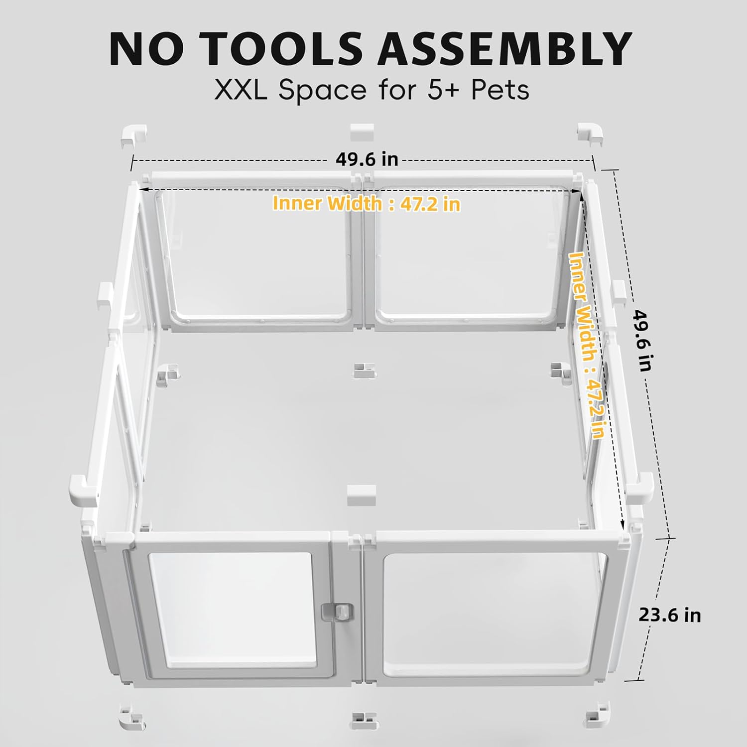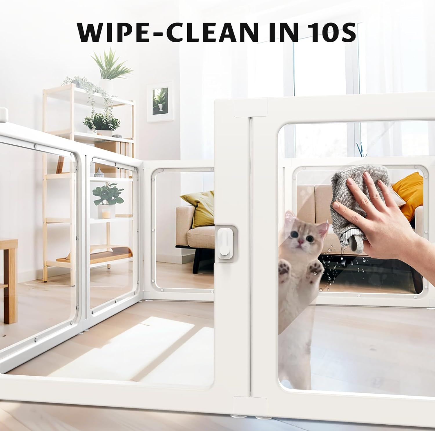 PALOPALO XXL Transparent Acrylic Pet Playpen for Puppies Nursing Dogs & Indoor Outdoor Cats - Lightweight Portable Kennel with Tool-Free Assembly, Breathable Design for Home Use