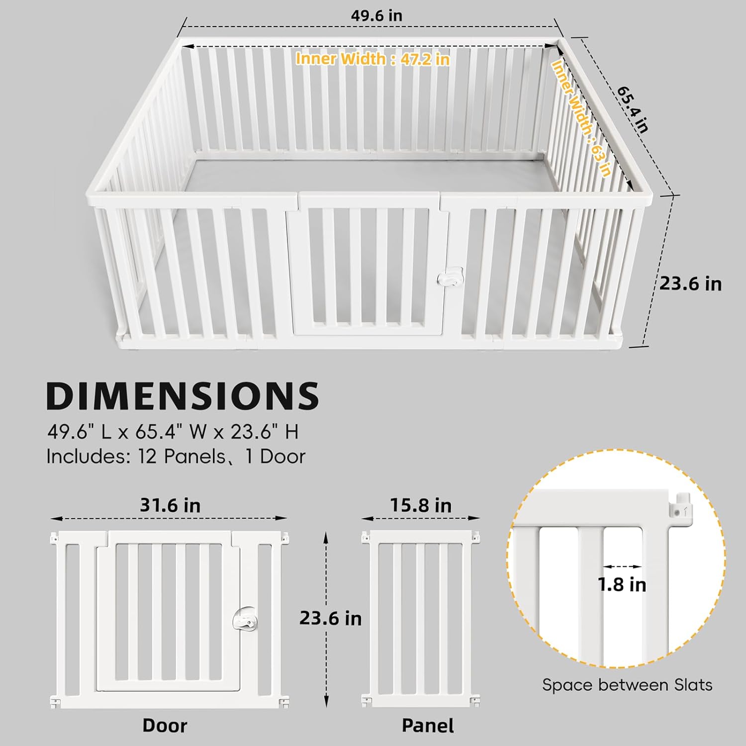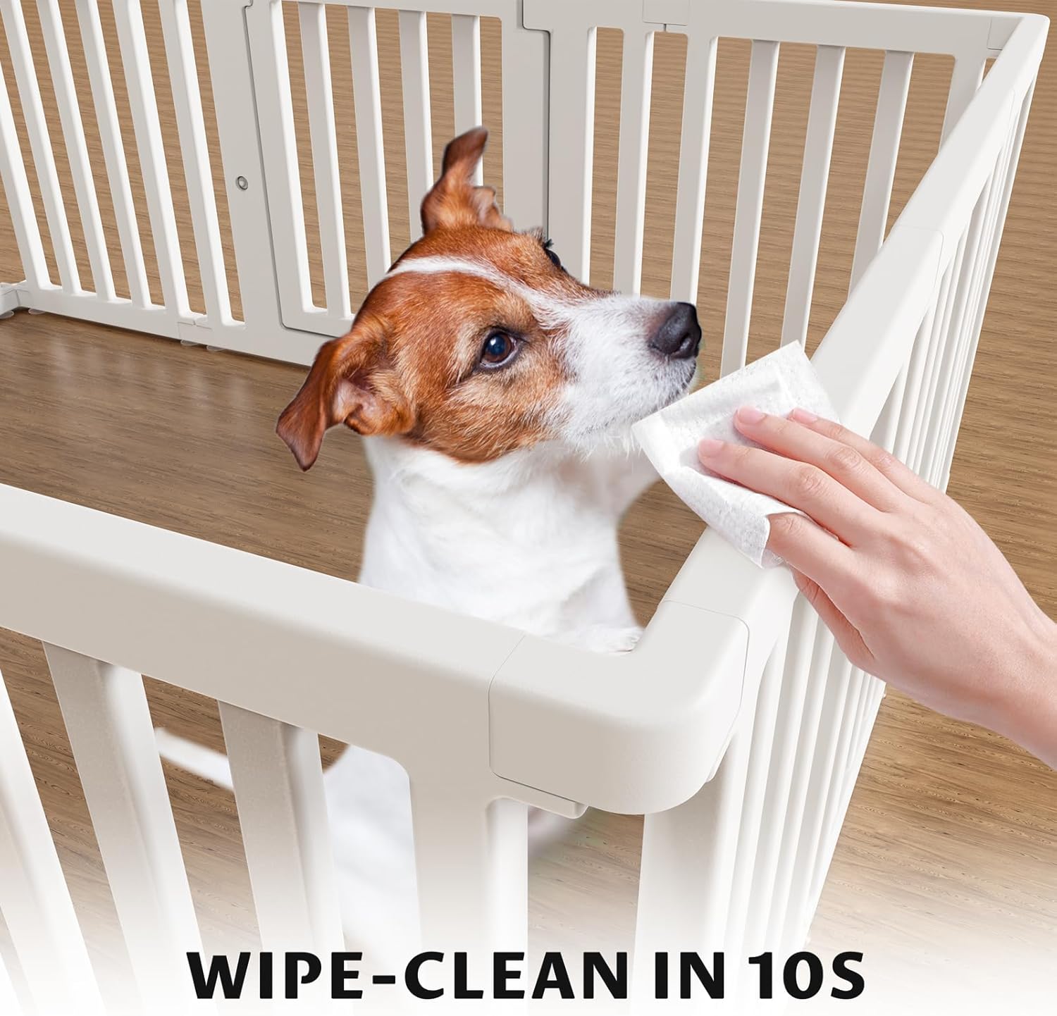 - Versatile & Easy Setup: The Dog Playpen's 12 pre-connected panels allow for quick, tool-free assembly. Easily adjust the shape and size to fit any room or yard, creating a secure space for small to medium pets in minutes.