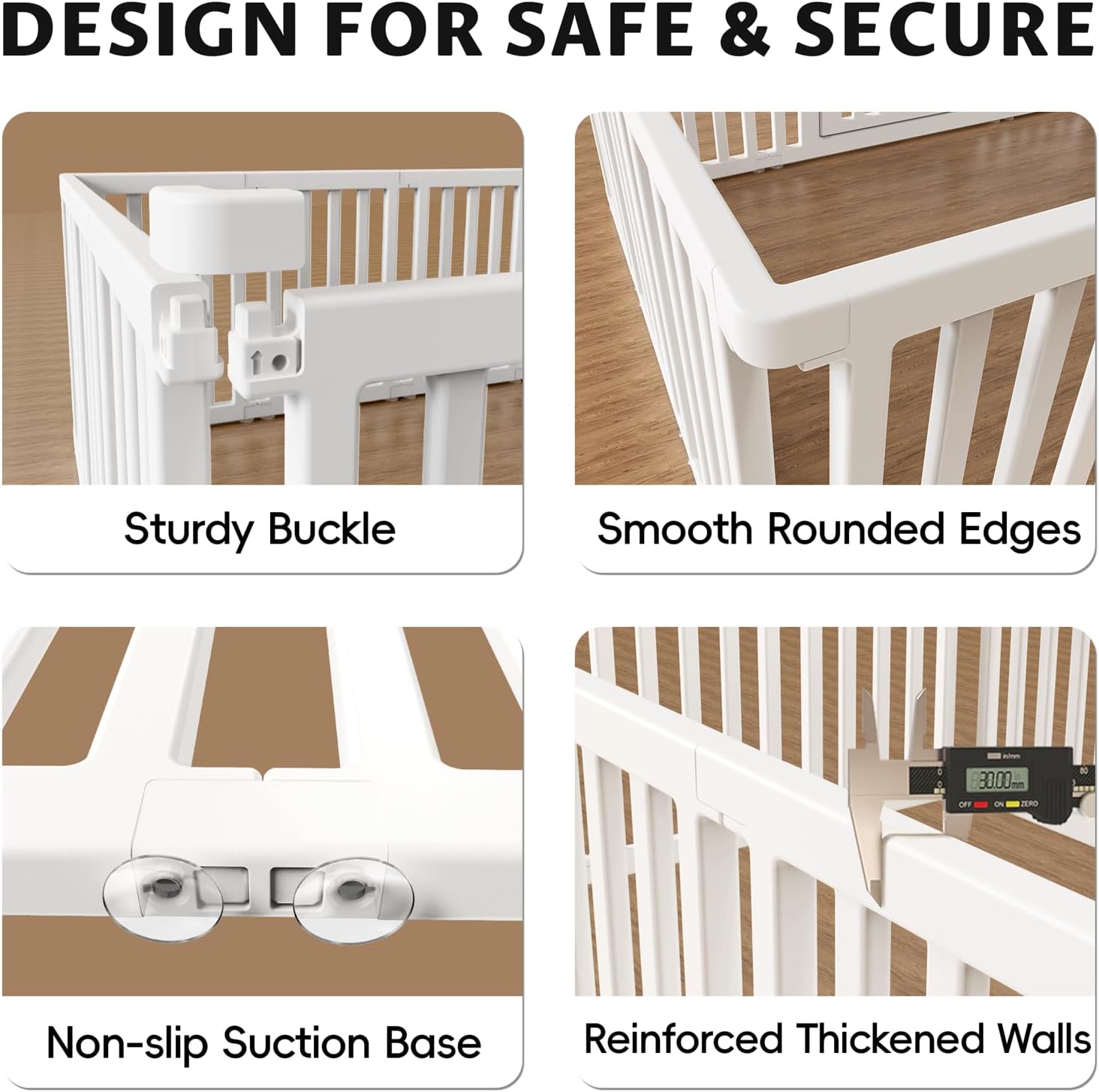 - Non-Slip Stability: The non-slip design with suction cups and stable polygon notch keeps the playpen firmly in place, even with active pets, preventing accidental movement.