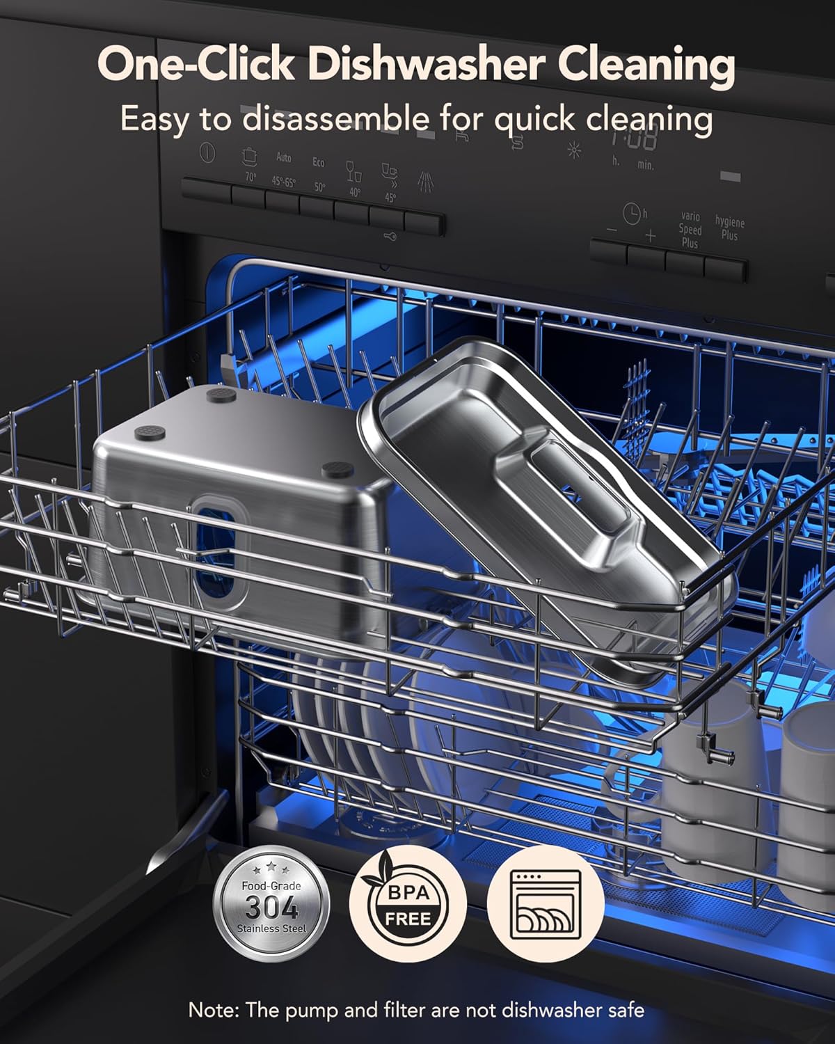 - Made from High-Quality 304 Stainless Steel: This fountain is far more long-lasting, safe, and sturdy than plastic alternatives. It’s BPA-free, ensuring a healthier drinking experience for your furry friend. The transparent window lets you monitor water levels at a glance, while it's dishwasher-safe, making cleaning and maintenance a breeze