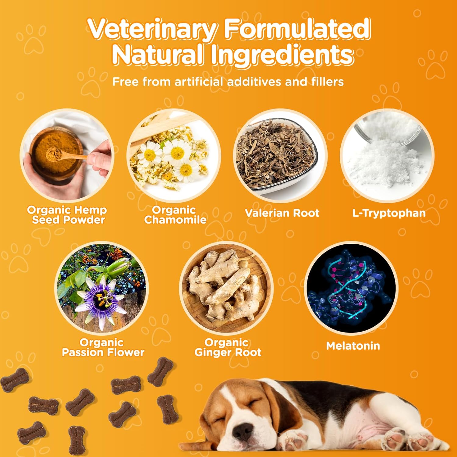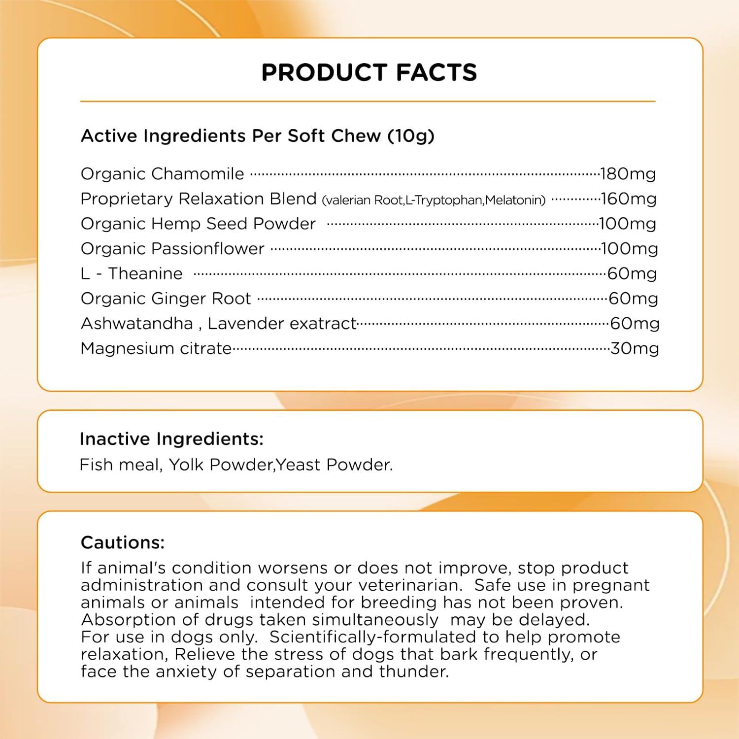 - Natural Calming Support: Formulated with organic chamomile, valerian root, passionflower, and L-tryptophan to help reduce anxiety and promote relaxation in dogs
