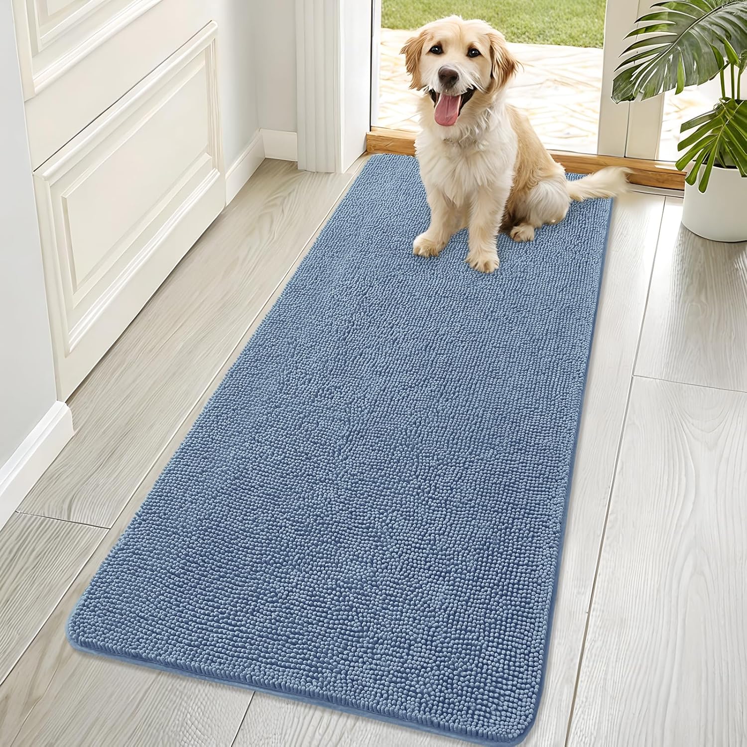 OLANLY Dog Door Mat for Muddy Paws 70x32, Absorbs Moisture and Dirt, Absorbent Non-Slip Washable Doormat, Quick Dry Chenille Mud Mat for Dogs, Entry Indoor Entryway Carpet for Inside Floor, Airy Blue