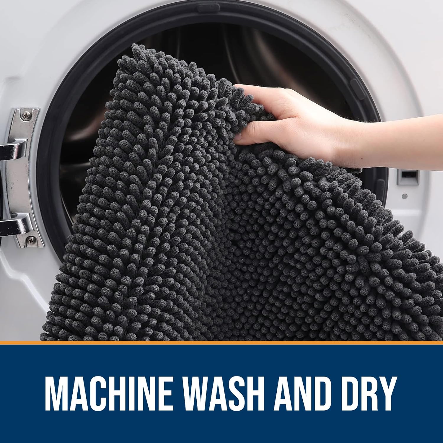 OLANLY Dog Door Mat for Muddy Paws 45x27, Absorbs Moisture and Dirt, Absorbent Non-Slip Washable Doormat, Quick Dry Chenille Mud Mat for Dogs, Entry Indoor Entryway Carpet for Inside Floor, Dark Grey