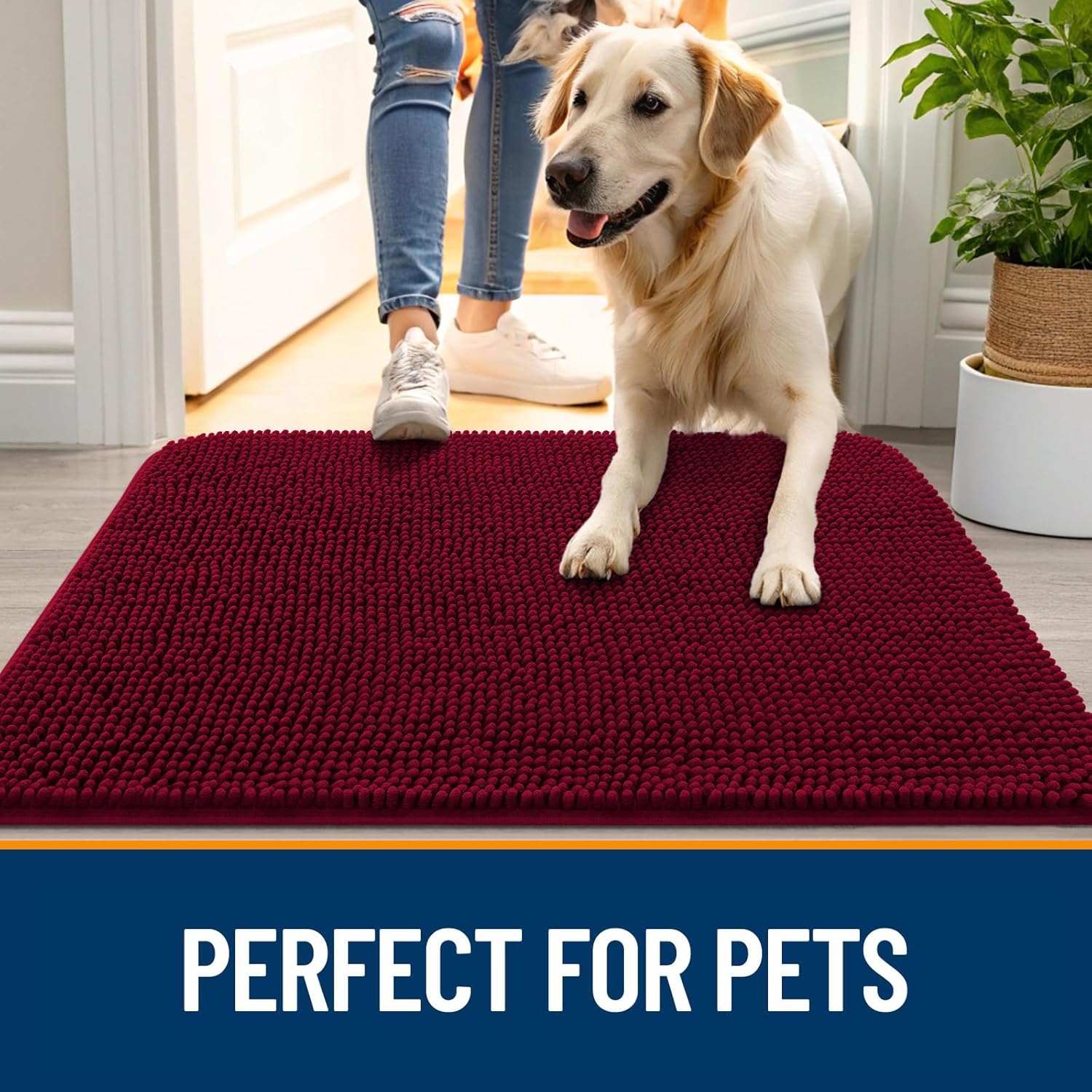 OLANLY Dog Door Mat for Muddy Paws 45x27, Absorbs Moisture and Dirt, Absorbent Non-Slip Washable Doormat, Quick Dry Chenille Mud Mat for Dogs, Entry Indoor Entryway Carpet for Inside Floor, Burgundy