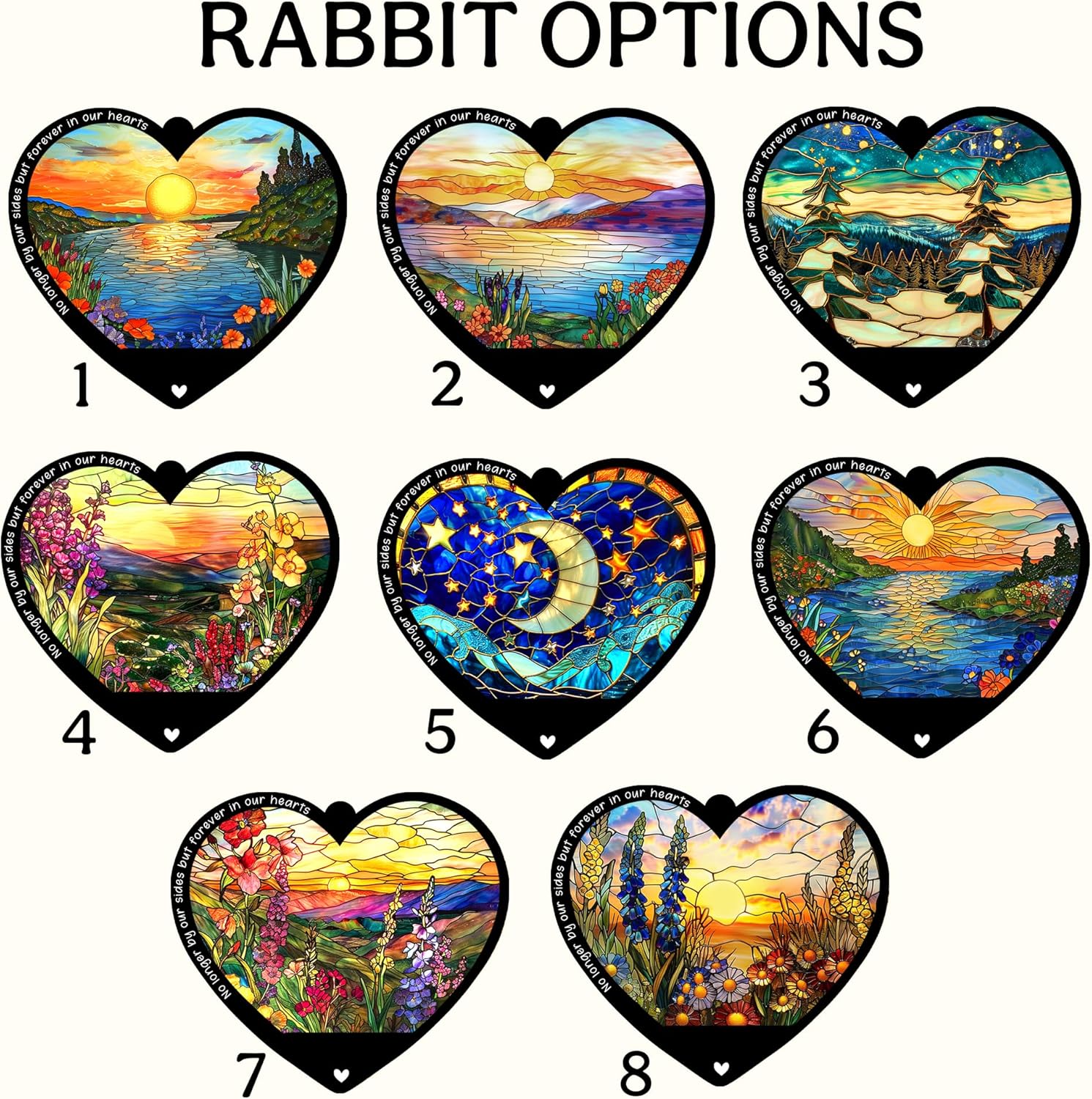 - VERSATILE DECOR & HEARTFELT TRIBUTE: This personalized bunny memorial suncatcher is a beautifully crafted keepsake to honor the memory of your beloved bunny. With space to customize names for up to 3 bunnies, this unique piece serves as a touching reminder of the joy they brought. Perfect for a sunny window, it casts a warm glow reflecting the love shared. Thoughtfully designed as a sympathy gift, this suncatcher brings comfort and a heartfelt tribute to cherished companions.