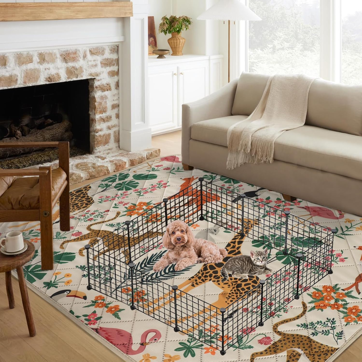 IEUUMLER Washable Pee Pads for Dogs, 1 Pack Forest Pattern Reusable Waterproof Puppy Pads, Non-Slip Super Absorbent Dog Training Pad for Playpen Crate Bed EU013 Beige Jungle, 48x48