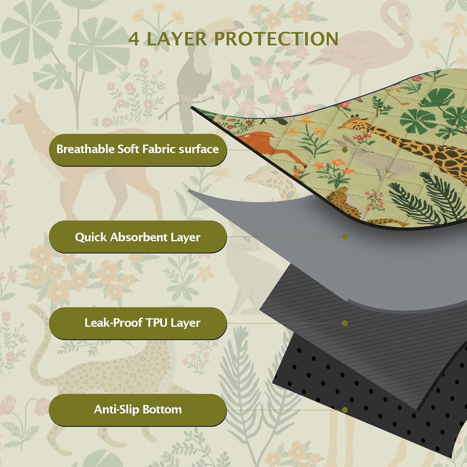 IEUUMLER Washable Pee Pads for Dogs, 2 Pack Forest Pattern Reusable Waterproof Puppy Pads, Non-Slip Super Absorbent Dog Training Pad for Playpen Crate Bed EU013 Green Jungle, 36x24