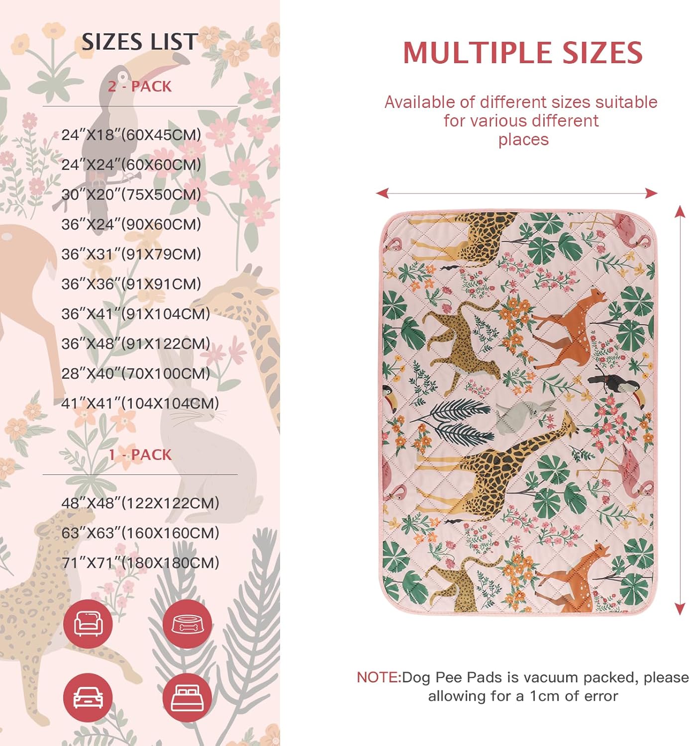 IEUUMLER Washable Pee Pads for Dogs, 1 Pack Forest Pattern Reusable Waterproof Puppy Pads, Non-Slip Super Absorbent Dog Training Pad for Playpen Crate Bed EU013 Pink Jungle, 48x48
