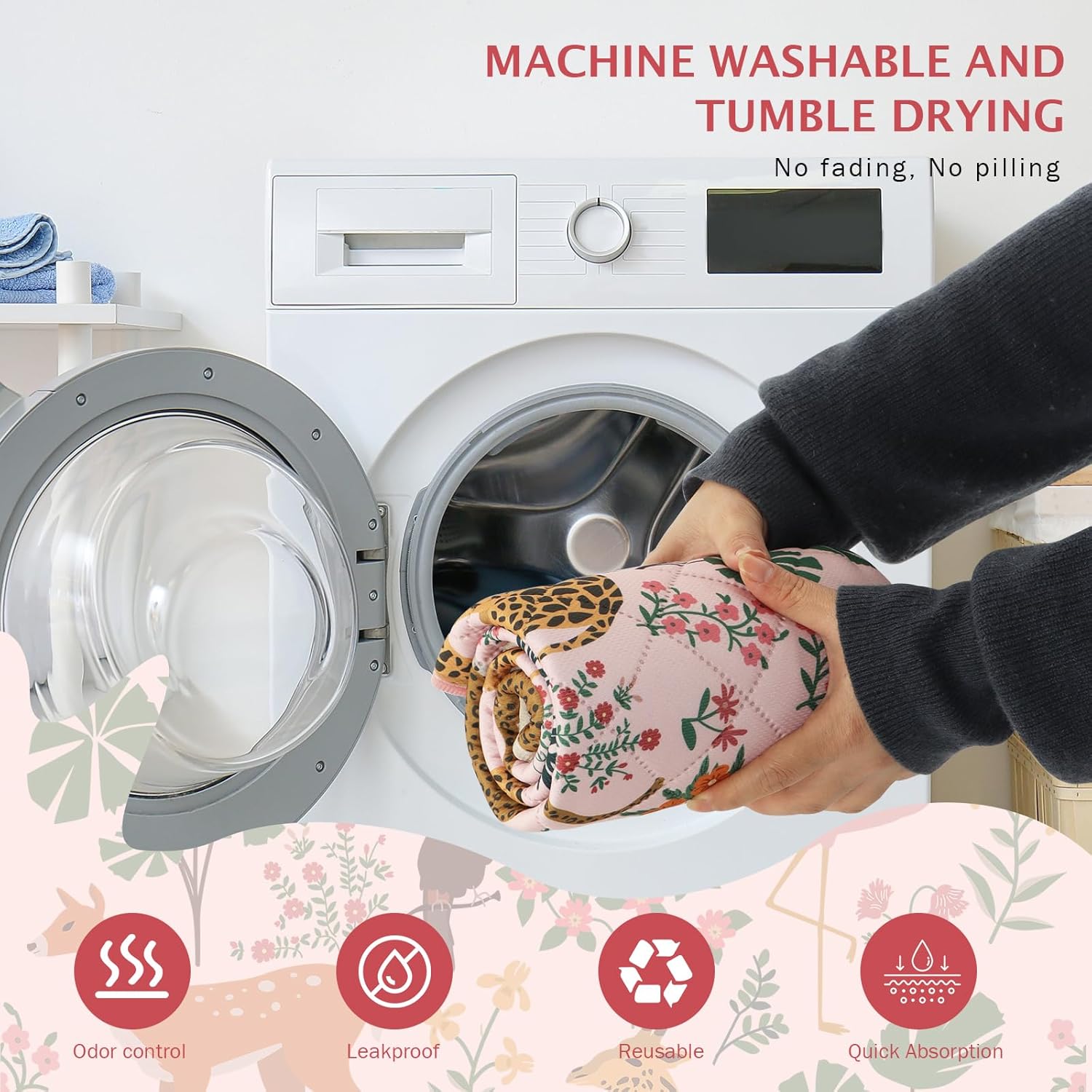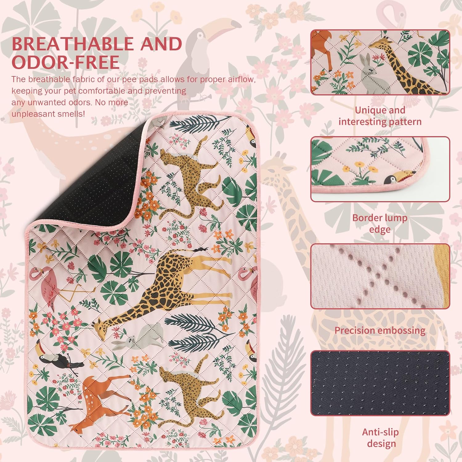 IEUUMLER Washable Pee Pads for Dogs, 2 Pack Forest Pattern Reusable Waterproof Puppy Pads, Non-Slip Super Absorbent Dog Training Pad for Playpen Crate Bed EU013 Pink Jungle, 24x18