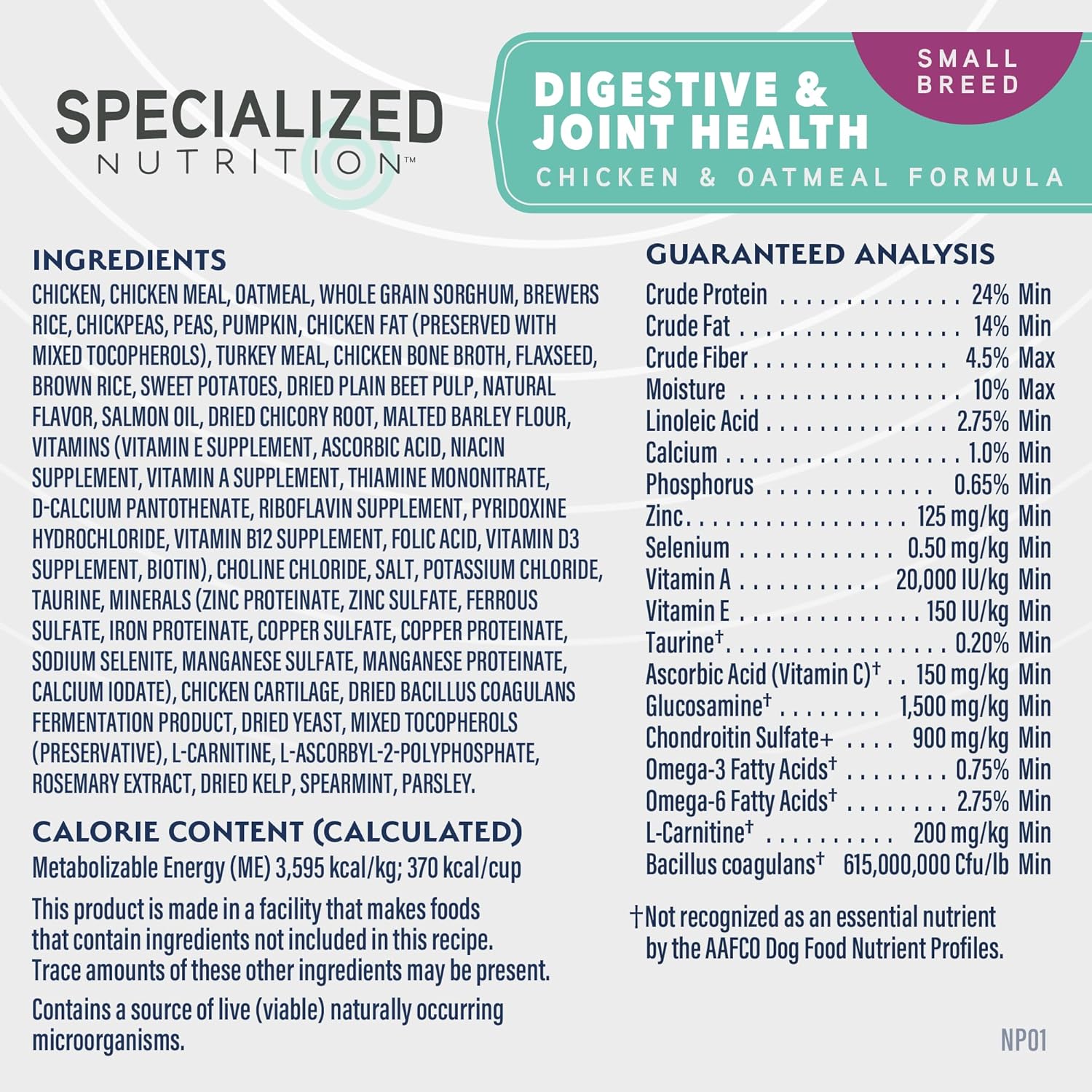 Natural Balance Specialized Nutrition Dry Dog Food with Chicken and Oatmeal for Dogs, Small Breed Digestive & Joint Health, Natural Ingredients with Added Vitamins & Minerals - 12 lbs