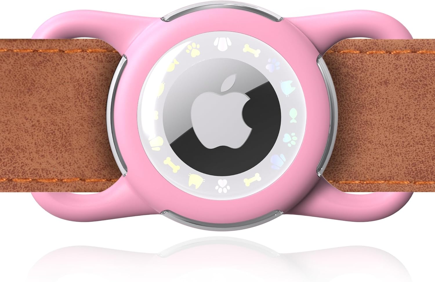 Airtag Dog Collar, Waterproof Airtag Holder for Dog Collar & Cat Collar Slicone Full Body Covered Pet Air Tag Holder (Pink, Regular)