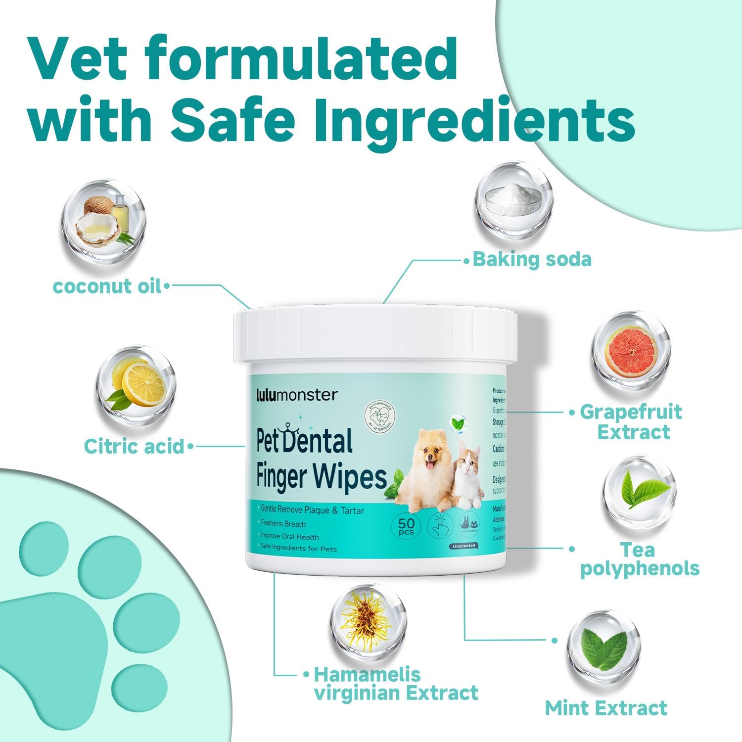 - 【Safe & Natural Ingredients】Vet-approved ingredients that gently clean your dog’s teeth. Treat your furry friend to a safe teeth cleaning experience with these dog and cat teeth cleaning wipes.
