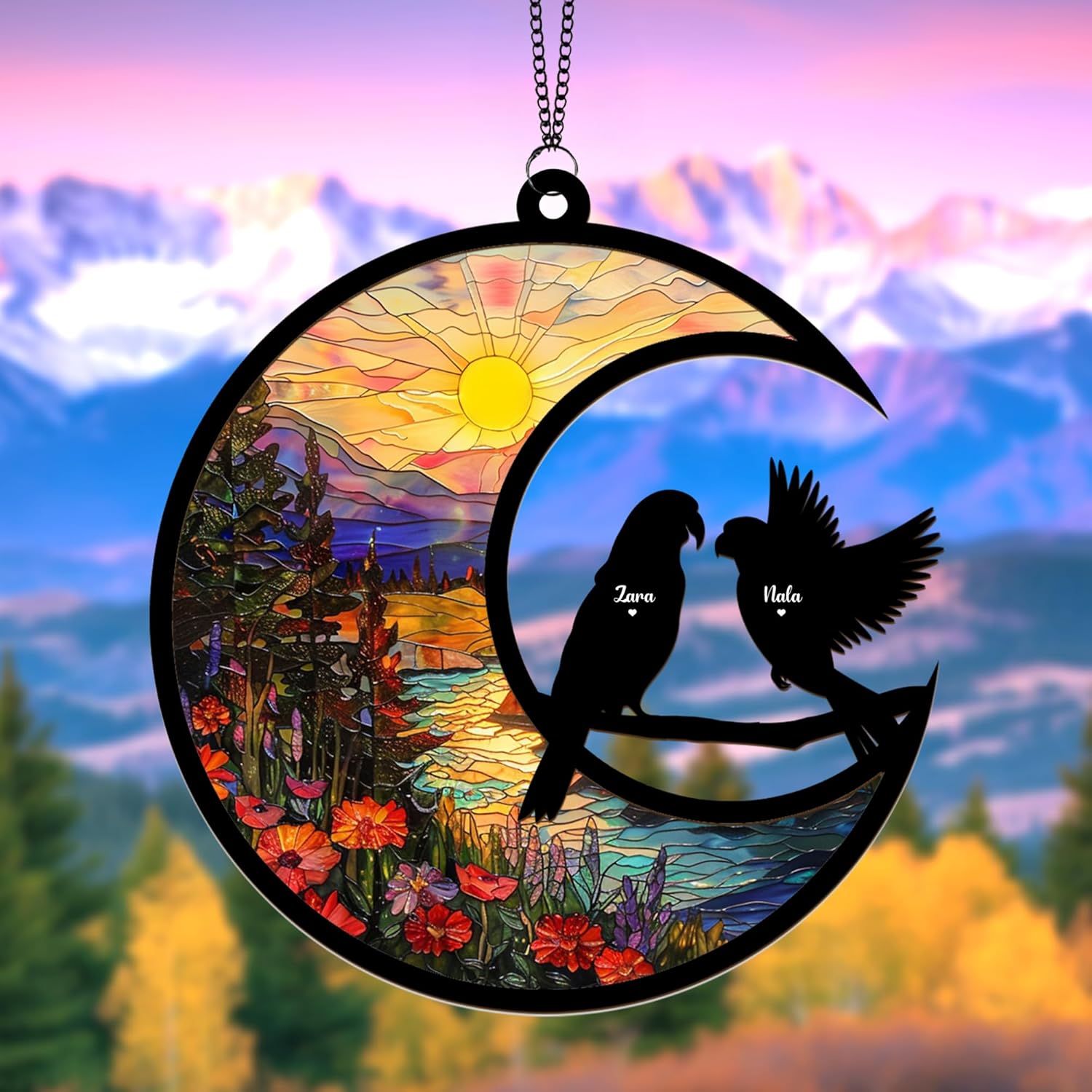 Personalized Parrot Memorial Suncatcher – Custom Bird Suncatcher with Name for Up to Two Birds, Sympathy Gift for Parrot Loss, Memorial Gift for Bird Lovers
