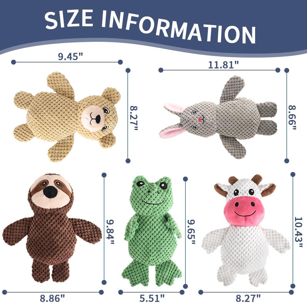 Act boldly 5-Pack Squeaky Dog Toys – Durable Animal-Shaped Plush Chew Toys for Dogs, Handmade Interactive Puppy Toys with Squeaker, Perfect for Reducing Destructive Behavior