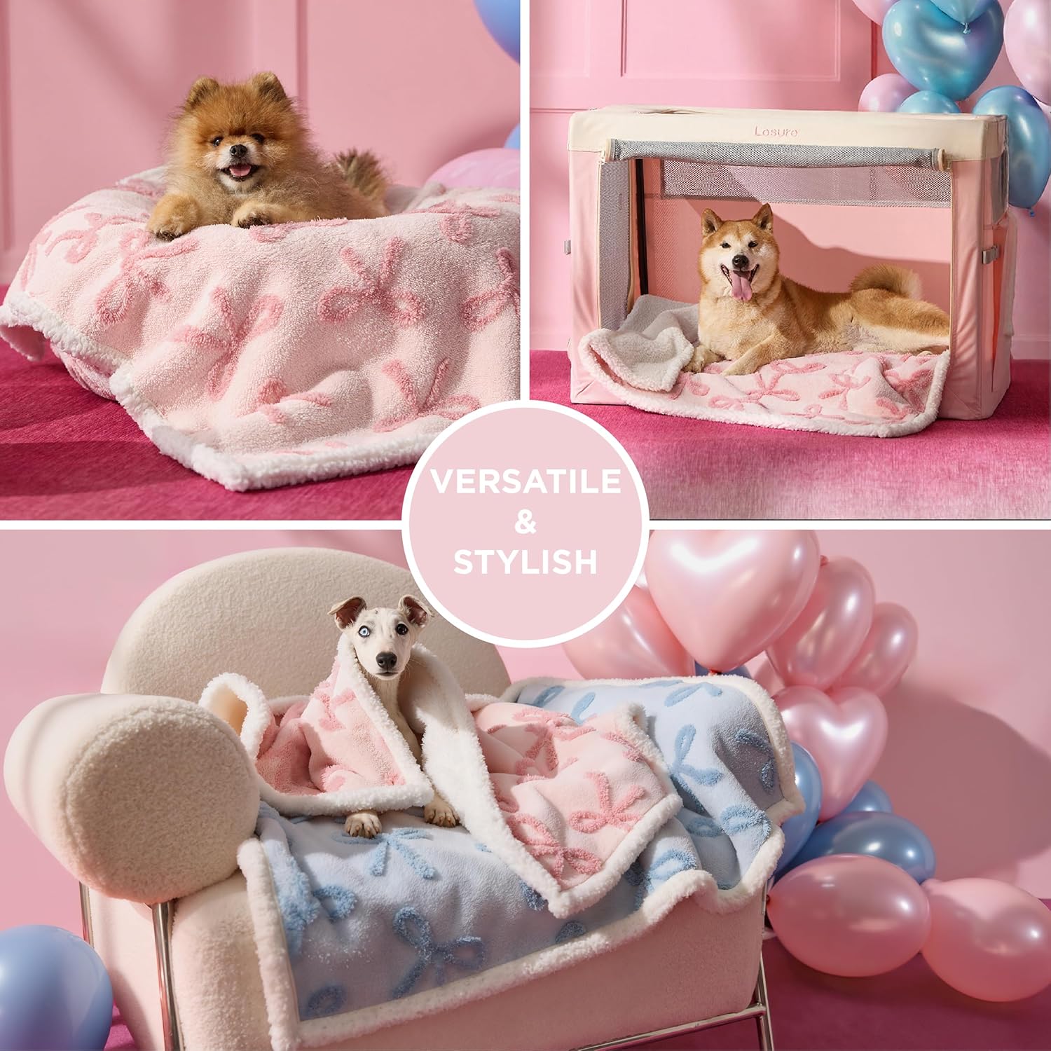 Lesure Waterproof Puppy Blanket for Medium Dogs - Washable Double Sided Dog Blankets with Warm Jacquard Shag and Soft Sherpa Fleece, Pet Cat Blanket for Couch Protection, Bow Design,Pink Taffy