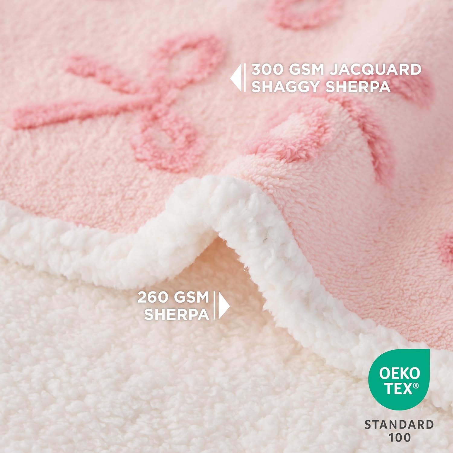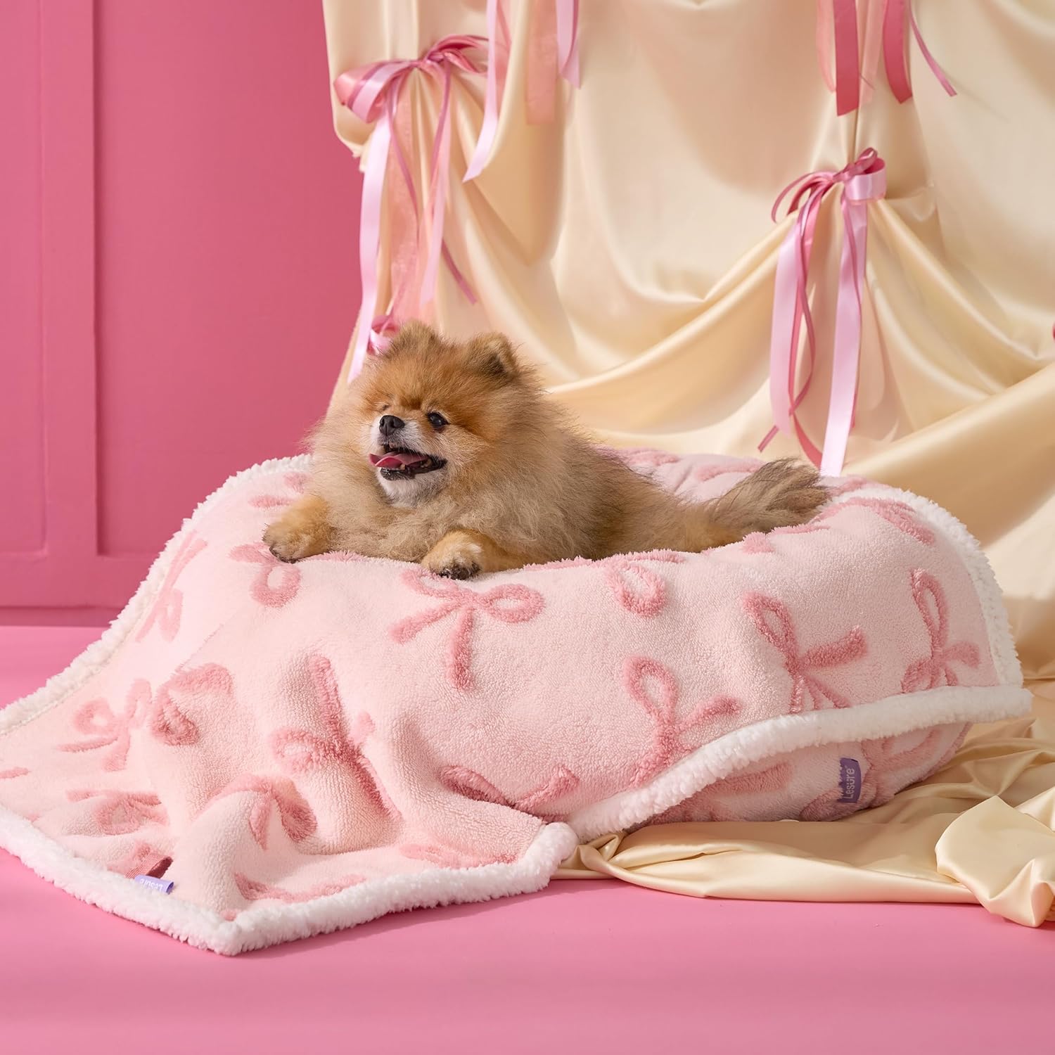 Lesure Waterproof Puppy Blanket for Small Dogs - Washable Double Sided Dog Blankets with Warm Jacquard Shag and Soft Sherpa Fleece, Pet Cat Blanket for Couch Protection, Bow Design,Pink Taffy