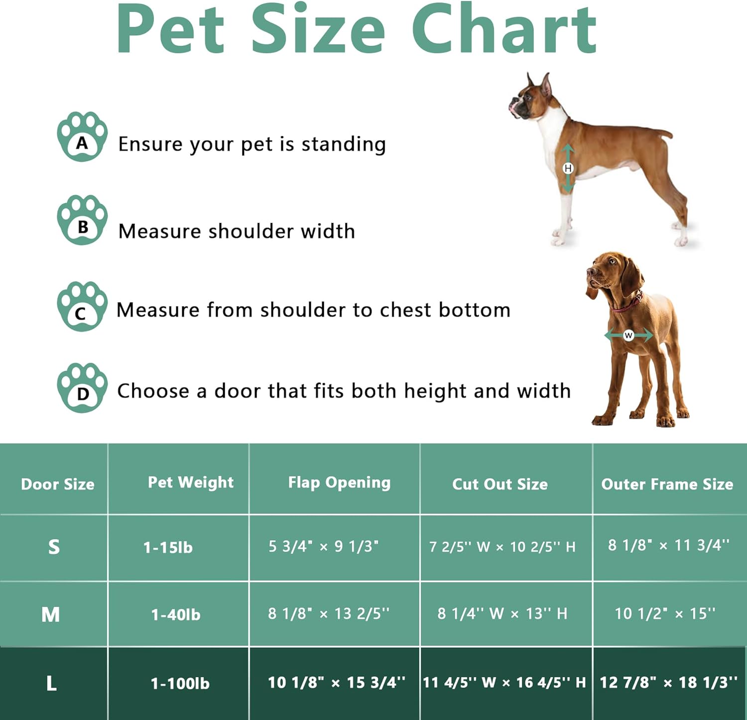 - PRODUCT SIZE: This product is a large size with a door opening size of 10⅛" × 15¾", suitable for pets weighing less than 100LB to enter and exit. Please choose the appropriate size according to your needs. If you encounter any problems, please feel free to consult with pre-sales.