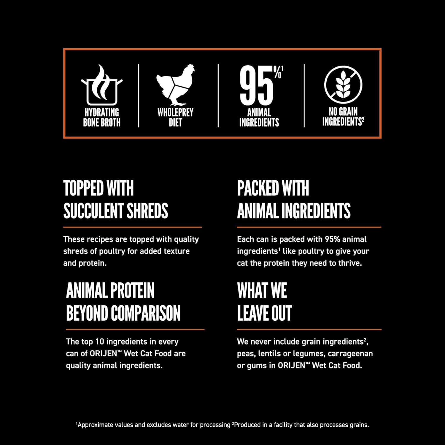 ORIJEN Chunks & Shreds Wet Cat Food Duck & Liver Entrée 5.5oz Cans (6 Count)