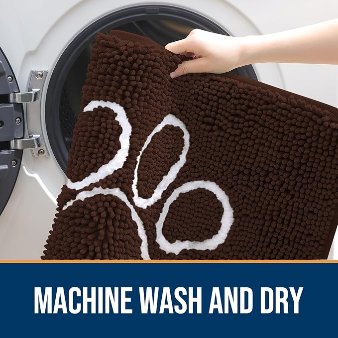 OLANLY Door Mat for Muddy Dog Paws 30x20, Ultra Absorbent Chenille Mud Doormat with Paw Print Design, Non-Slip Washable Doormat for Indoor Entryway, Quick-Dry Pet Bed Mats for Dirty Dogs, Brown