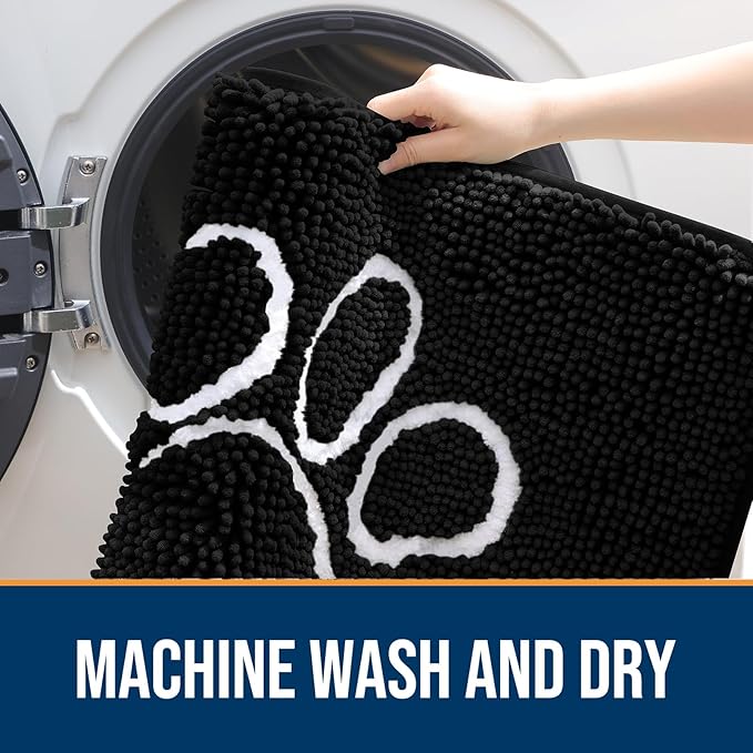 OLANLY Door Mat for Muddy Dog Paws 40x32, Ultra Absorbent Chenille Mud Doormat with Paw Print Design, Non-Slip Washable Doormat for Indoor Entryway, Quick-Dry Pet Bed Mats for Dirty Dogs, Black