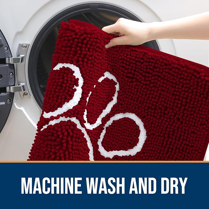 OLANLY Door Mat for Muddy Dog Paws 48x30, Ultra Absorbent Chenille Mud Doormat with Paw Print Design, Non-Slip Washable Doormat for Indoor Entryway, Quick-Dry Pet Bed Mats for Dirty Dogs, Red