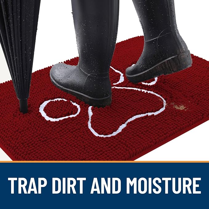 - [ABSORBS MOISTURE AND DIRT] OLANLY indoor dog mat for muddy paws is crafted to efficiently remove dirt and swiftly absorb moisture. With our doormat, your shoes will be instantly clear of any water, dust, grit, muck, sand, sleet, grass, slush, rain, or snow upon entering the house. It's an excellent choice for use as an entryway door mat, a welcoming door mat, or a dirt-trapping mat.