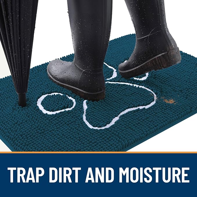 - [ABSORBS MOISTURE AND DIRT] OLANLY indoor dog mat for muddy paws is crafted to efficiently remove dirt and swiftly absorb moisture. With our doormat, your shoes will be instantly clear of any water, dust, grit, muck, sand, sleet, grass, slush, rain, or snow upon entering the house. It's an excellent choice for use as an entryway door mat, a welcoming door mat, or a dirt-trapping mat.