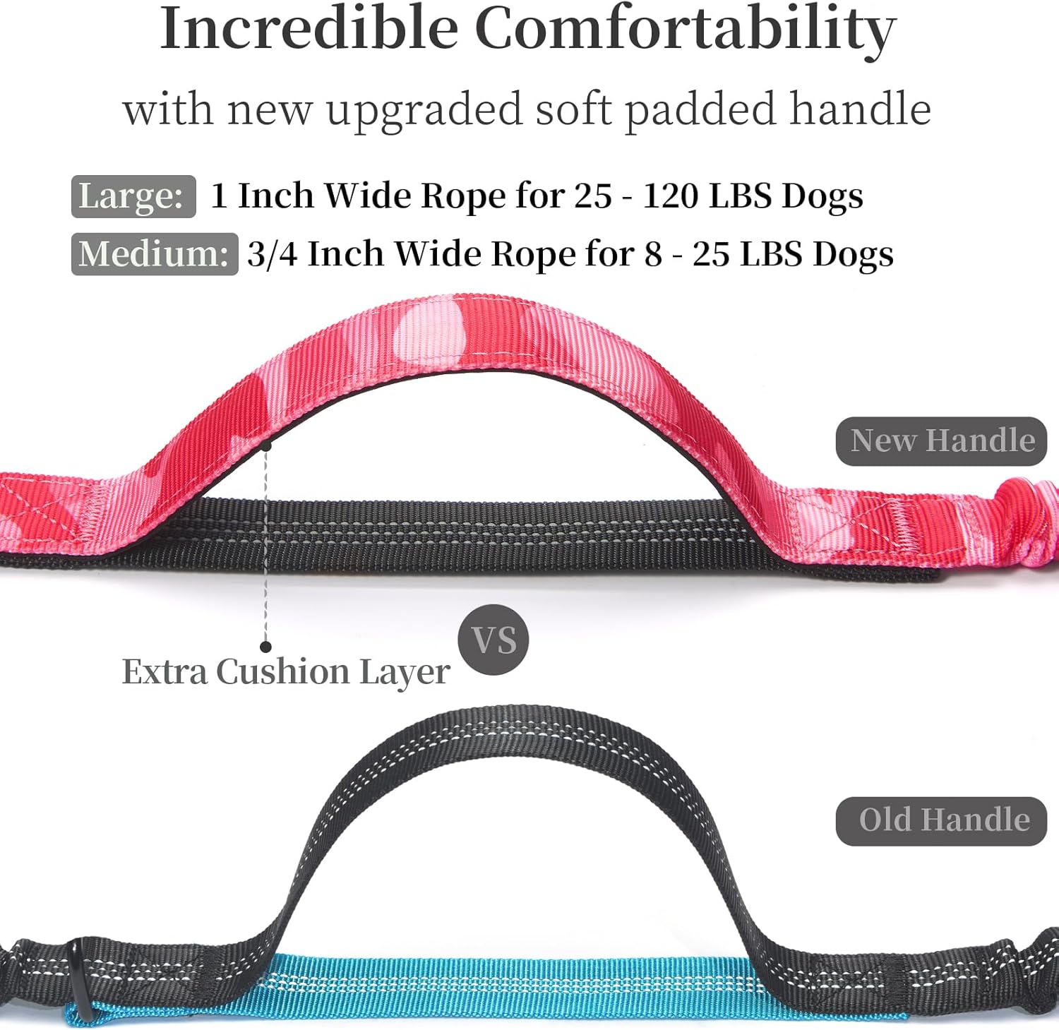 iYoShop Hands Free Dog Leash with Zipper Pouch, Dual Padded Handles and Durable Bungee for Walking, Jogging and Running Your Dog (camo Pink, Large)