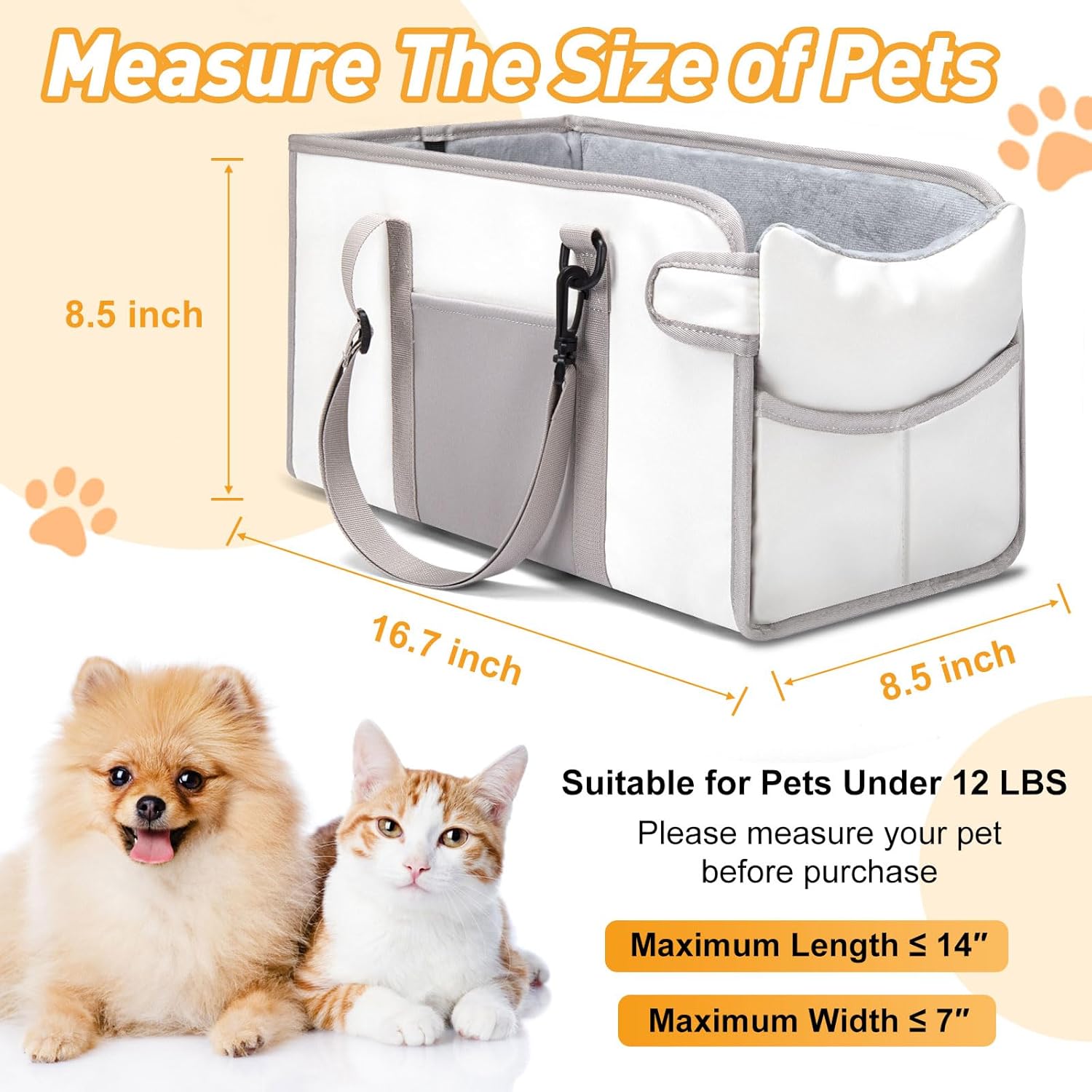 - 【Pet Car Seat】This is a well crafted dog car seat for small dogs, recommended for small dogs and cats under 12 pounds and with a body length of less than 14 inches. It is easy to install and the mat can also be removed for easy cleaning and care. It is very suitable for long-distance travel with pets. Before purchasing, please measure the size of your dog and center console.