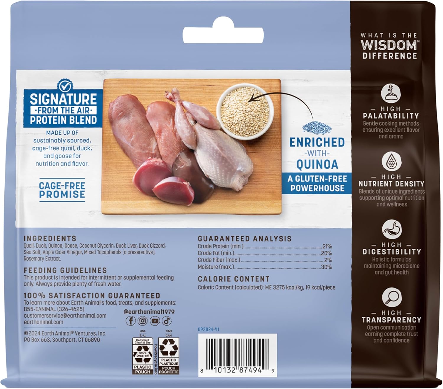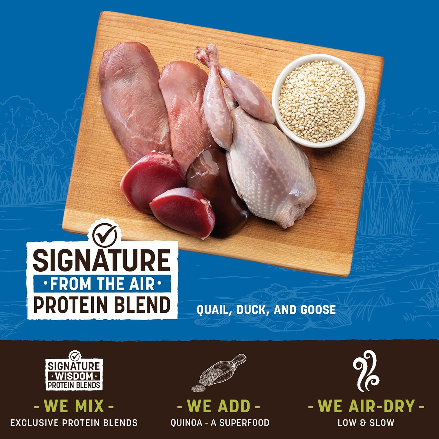 - UNIQUE, PREMIUM RECIPE: Made with our Exclusive Protein Blend of sustainably sourced quail, duck, and goose to deliver superior nutrition & taste. Enriched with quinoa, an ancient grain