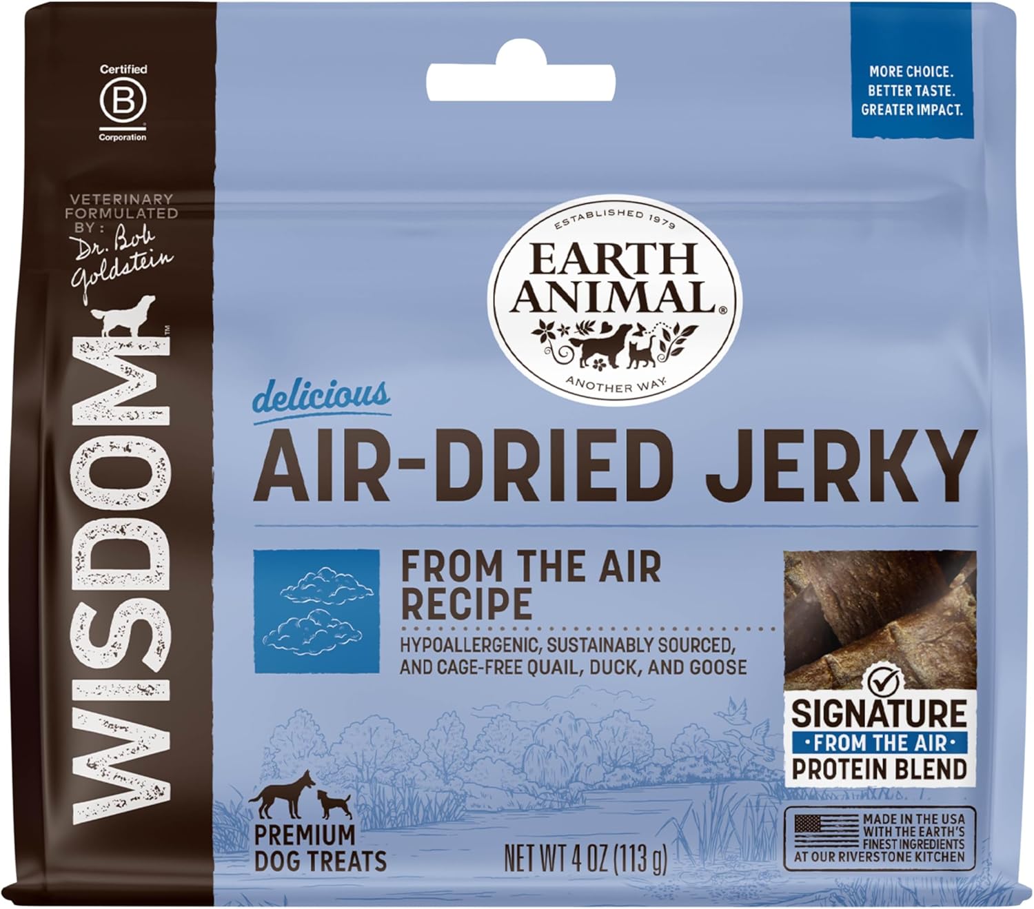 Earth Animal Wisdom Air-Dried from The Air Recipe Premium Natural Jerky Strips Dog Treats, 4 oz. Bag