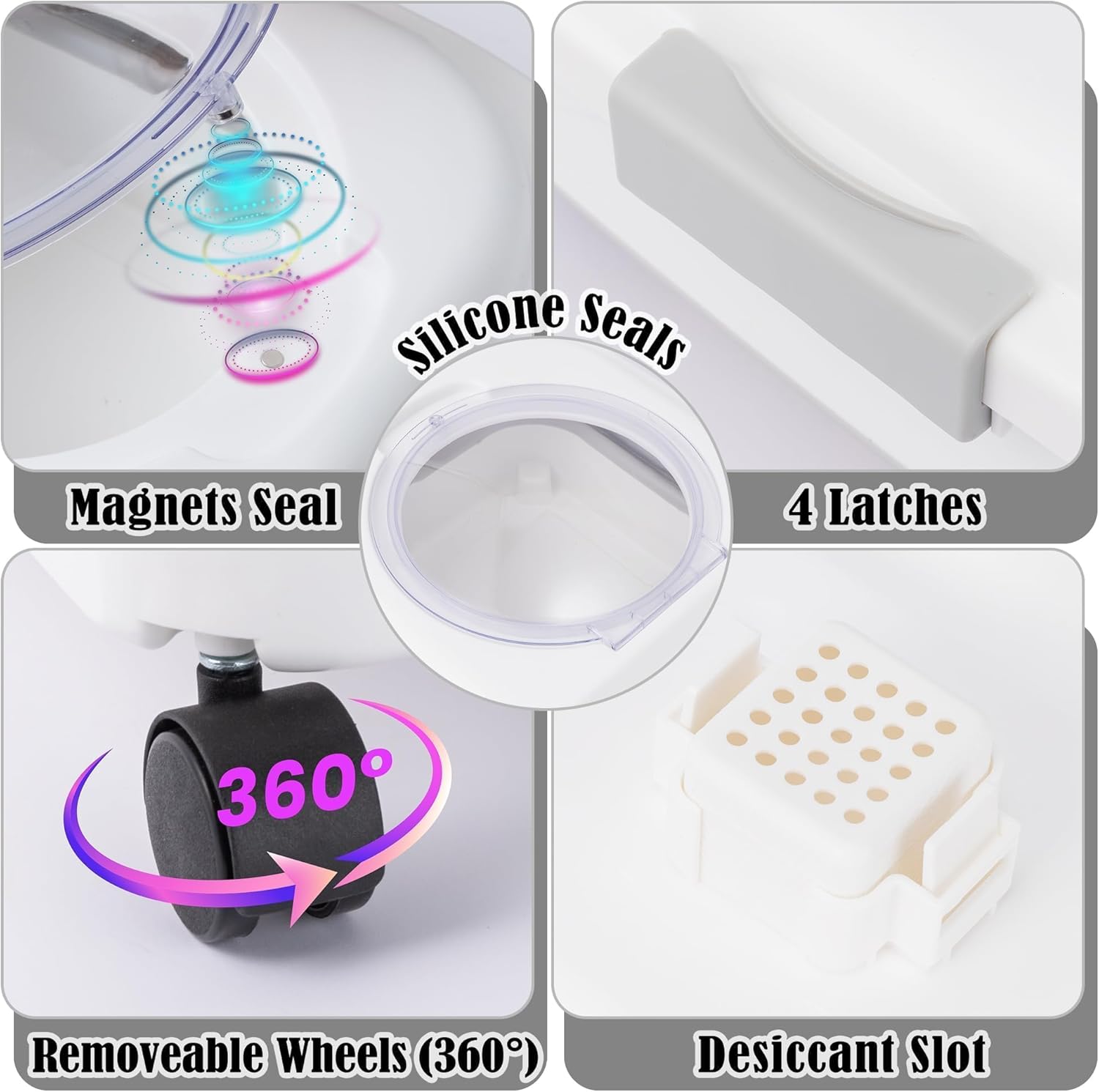 - Built to Last with Premium Materials: Made from high-quality plastic and silicone, this container is durable and won't easily break or wrinkle. It stays like new, is non-toxic and odorless, and doesn't require drying or washing. You can stock up on food right away when you receive it. The grooves on the lid are ideal for placing desiccant or deodorant tablets to keep the food fresh and clean.