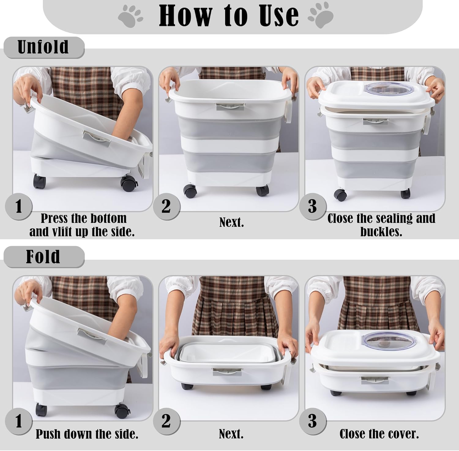 - Versatile Storage: This food container is not just for pet food, it's also perfect for storing various kitchen essentials. Foldable shapes can be easily changed at any time for different capacities to meet your food serving needs, and it is also portable for outdoor use.