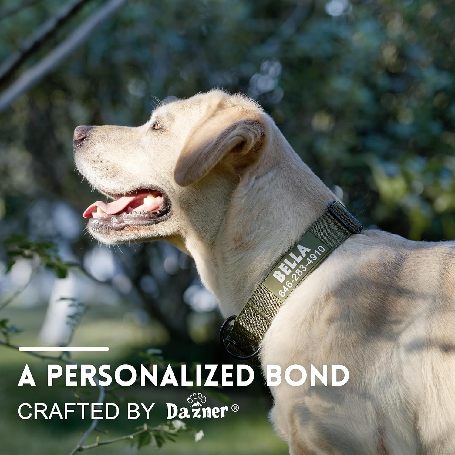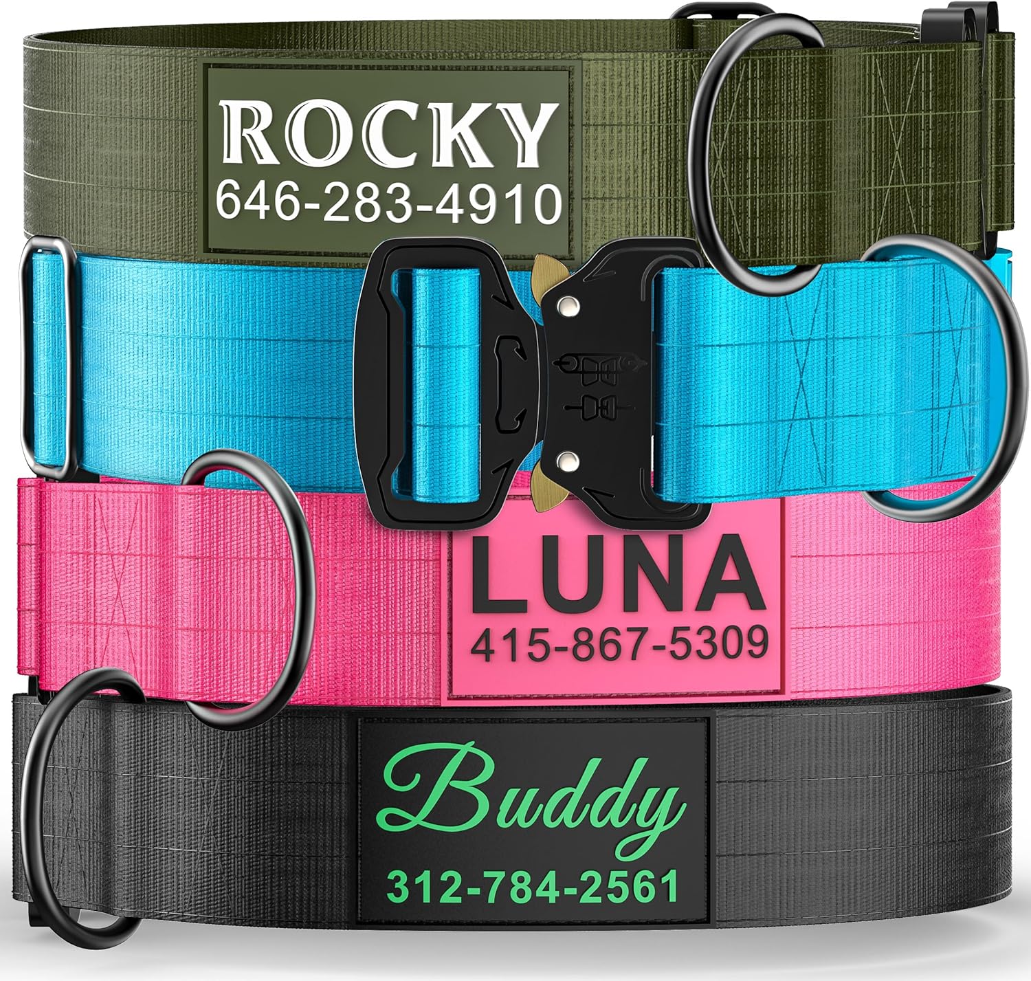 Personalized Tactical Dog Collar for Large Dogs, Heavy Duty Military Collar with Name, Made of Thick Nylon and Strong Metal Buckle for Maximum Durability, Available in Pink, Blue, Black, and Green