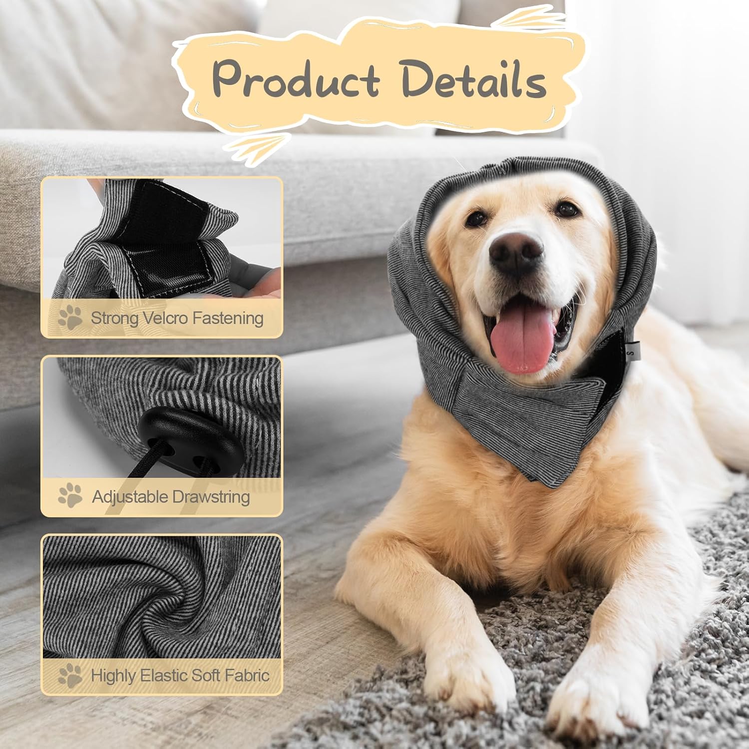 Dog Snood, Adjustable Dog Calming Hoodie, Dogs Ear Cover for Noise Anxiety Relief, Hematoma, Grooming and Force Drying, Windproof Pets Headband for Grooming