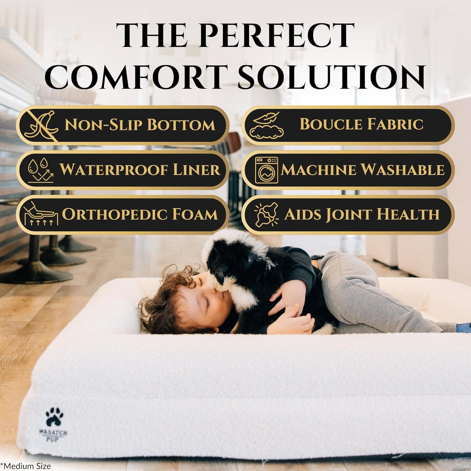 Luxury Boucle Fabric Orthopedic Large Dog Bed with Memory Foam | Breathable Comfort and Washable Dog Couch Bed with Waterproof Liner & Cover | Ideal Pet Beds for Big Dogs - Bone (45"x36x7)