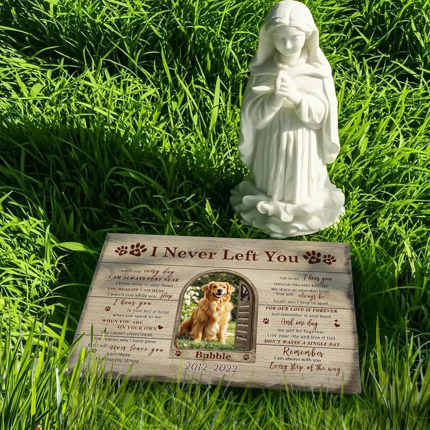 - Versatile Garden Stone or Headstone--This high-quality pet memorial frame is a perfect addition to your home, garden, or even as a headstone in the graveyard. The high-definition UV printing is meticulously applied to faithfully reproduce the vivid colors of your precious photos. Its lightweight and compact design make it easy to place anywhere you desire.