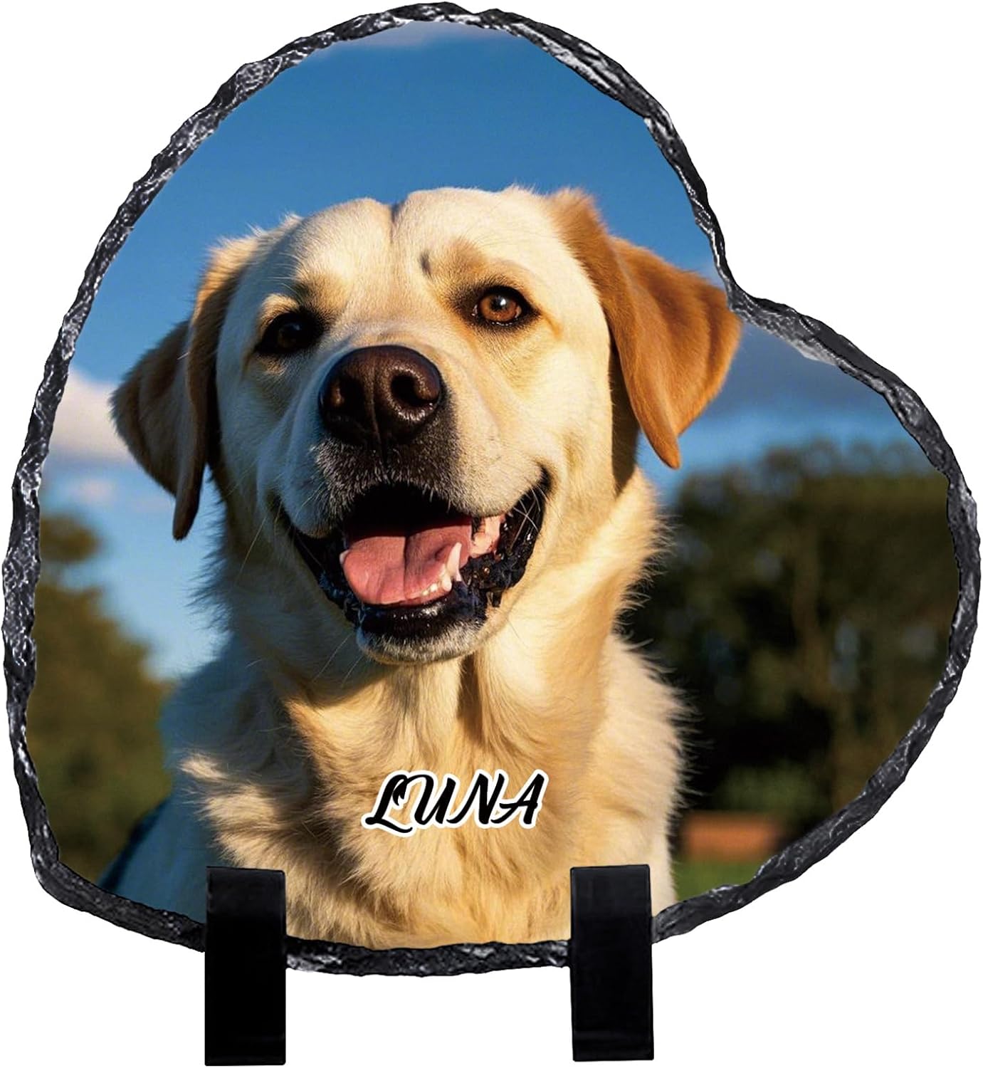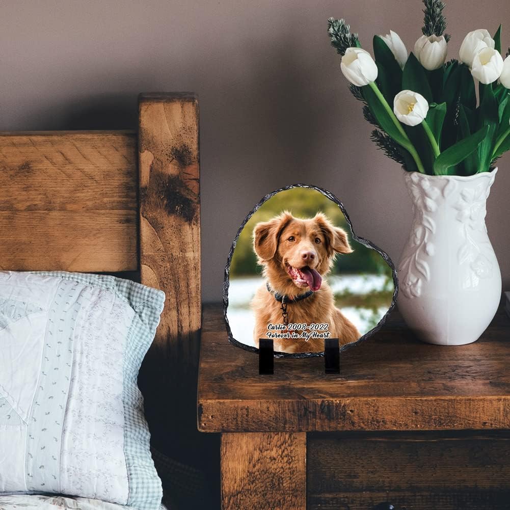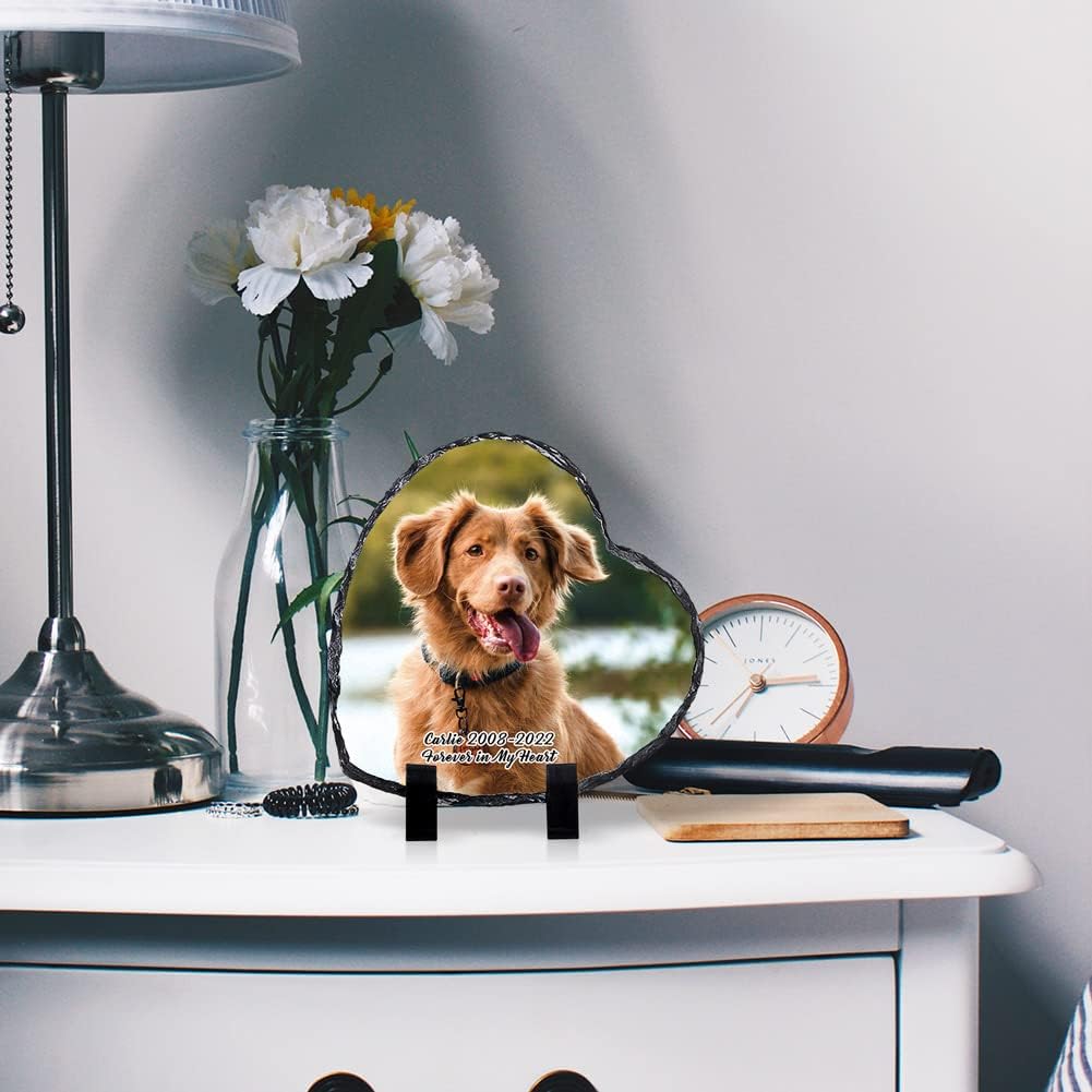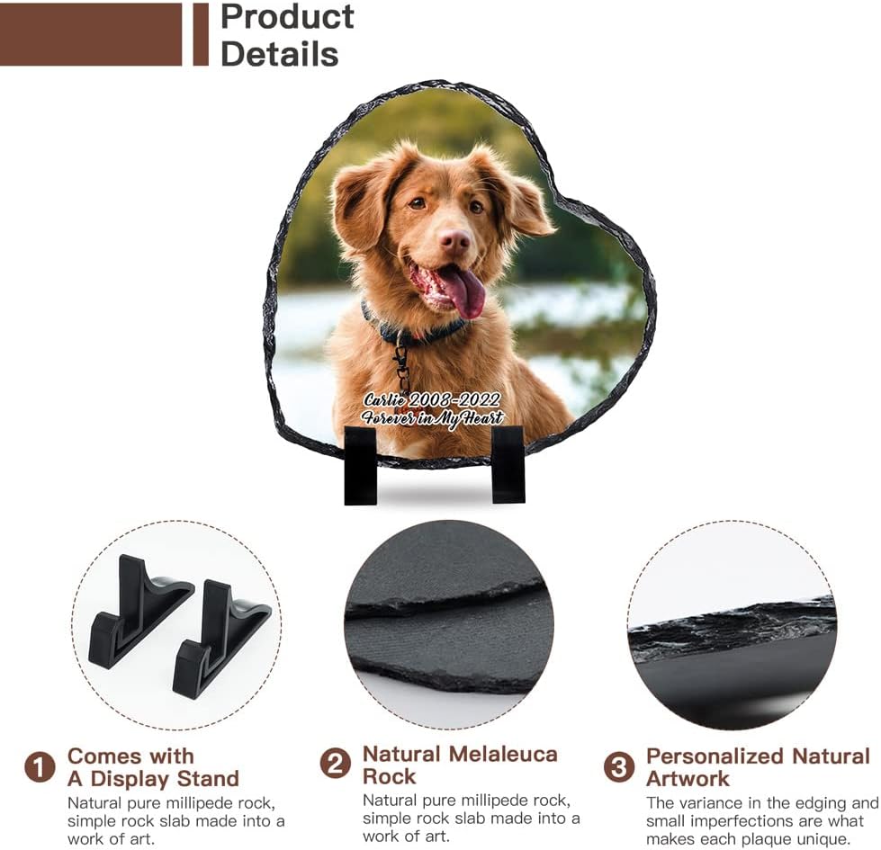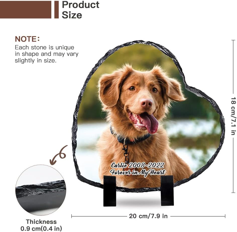 Bemaystar Customized Rock Slate Photo Frame- Personalized Picture Memorial Plaque, Creative Heart Shaped Picture Frame Gift for Couples Families Friends 7.9x7.9