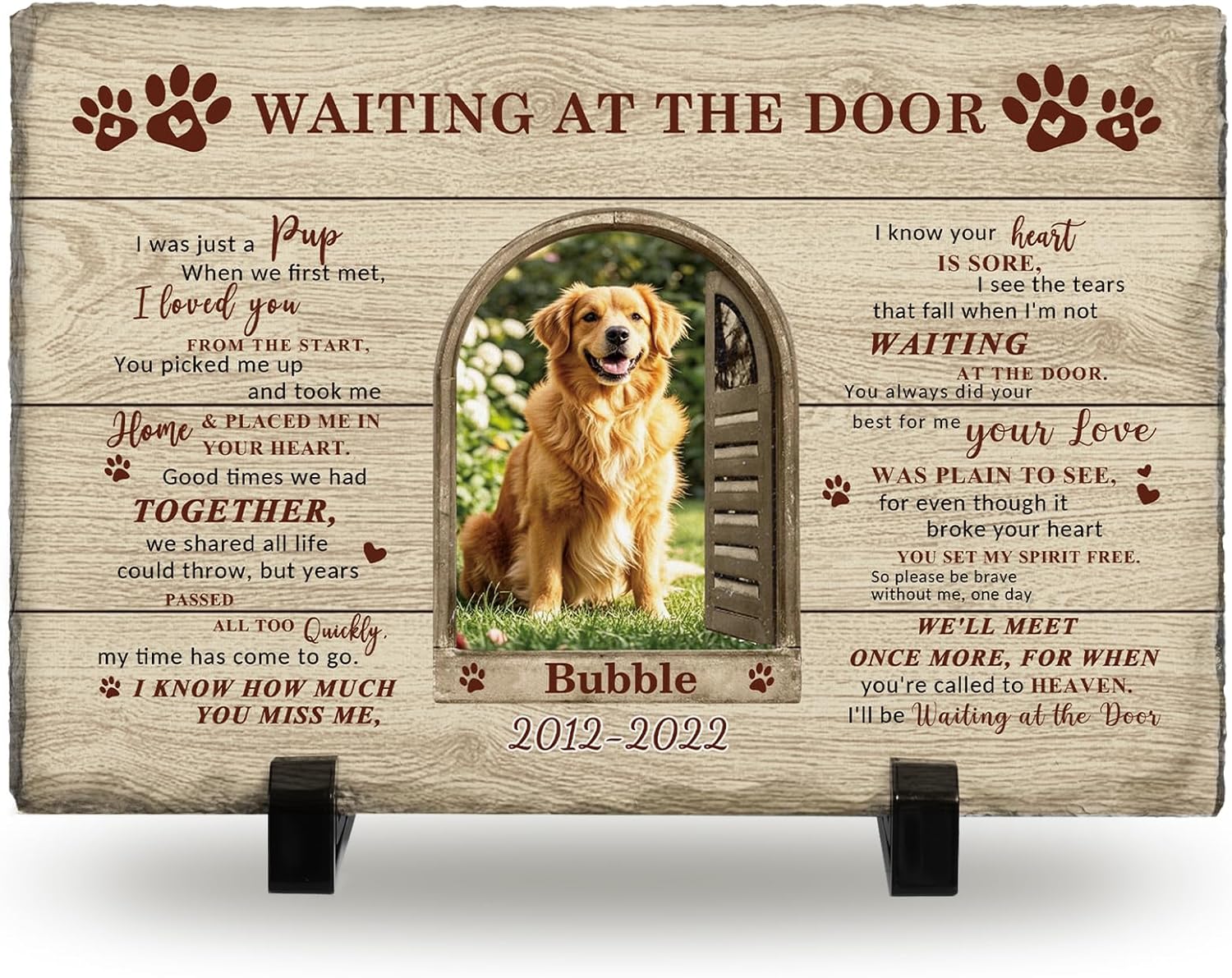 - A Thoughtful Sympathy Gift--Finding the right words can be challenging when a friend or loved one is mourning the loss of a pet. Ease their pain and help keep the memories alive by presenting them with this dog memorial gifts for loss of dog. You can personalize it with a cherished picture, the pet's name, and significant dates, making it a truly unique and touching gift.