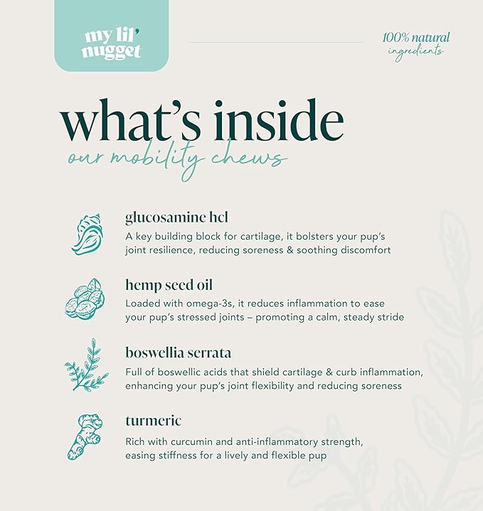 My Lil' Nugget - Natural Hip & Joint Supplement Chews for Dogs - Glucosamine, Hemp Seed & Chondroitin Mobility Support - Bacon Flavored - Soft Chews for All Ages - 90 Count