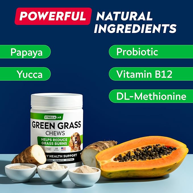 STRELLALAB Green Grass Dog Chews - Dog Pee Grass Helper - Supplement Urine Neutralizer for Grass Burn Spots - Grass Treatment for Pet Urine - Pee Lawn Repair Treats with Probiotics - Made in USA
