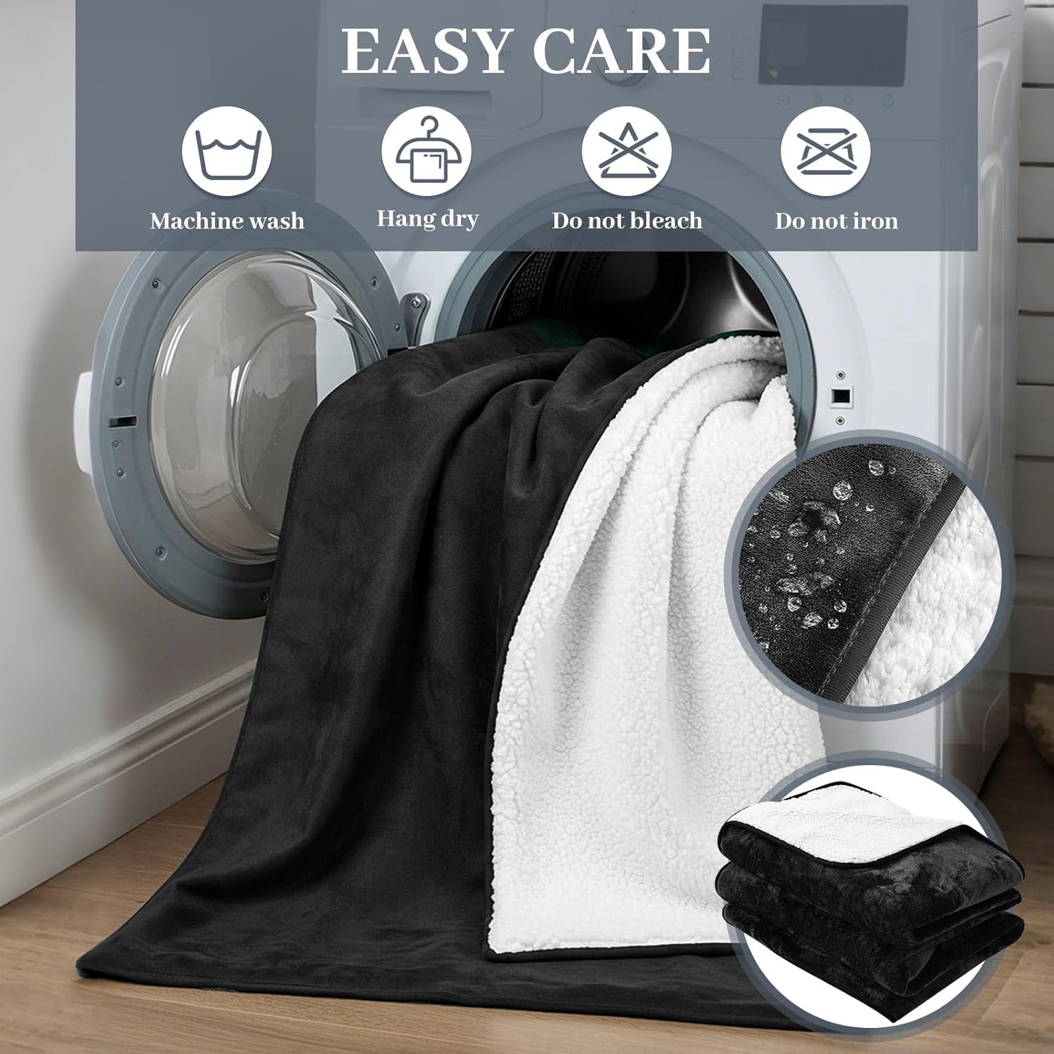 Love Black Waterproof Bed Blanket, Queen Size XL 80'' x 90'' Double Side Leakproof Reversible Sherpa Flannel Fleece 3 Layer Lightweight Blanket, Absorbs 78oz